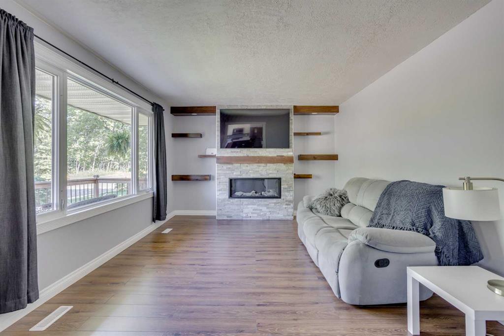 ACROSS FROM TREE LINE! RENOVATIONS COMPLETE! Welcome to pride of ownership on sought-after Hilltop Crescent—where comfort meets style in a beautifully updated home across from scenic walking trails and a peaceful tree line. Step into a spacious foyer and through charming entry into a generous sun filled living room accented nicely by a stunning fireplace feature wall. The renovated kitchen is a standout with ample counter space which includes a large isalnd, white cabinetry, and sleek stainless steel appliances. Down the hall, you’ll find three comfortable bedrooms and a fully updated 4-piece bathroom (2023) with modern finishes. The fully developed basement is a dream space, offering a large recreation area, a cozy den, a 4th bedroom, and a must-see bathroom featuring a gorgeous custom tile shower and dual sinks—perfect for guests or a growing family. The updated laundry room adds extra convenience. Enjoy your morning coffee on the front porch with tranquil views of the tree line and walking trails, or entertain in your fully fenced, landscaped backyard. A swing gate on one side allows for extra parking or RV access. Recent updates include: kitchen countertops (2025), stainless steel appliances (2019), interior paint (2021), new shingles (2024), A/C unit (2024), furnace & hot water on demand (2019), main bath countertops (2025), updated flooring throughout, washer & dryer (2019), newer front deck, fencing, and landscaping, as well as updated interior door hardware, and newer siding and windows from the previous owner. This home is located close to all amenities, including schools, grocery stores, and a dog park—everything you need just minutes away. Don’t miss out—book your private showing today!