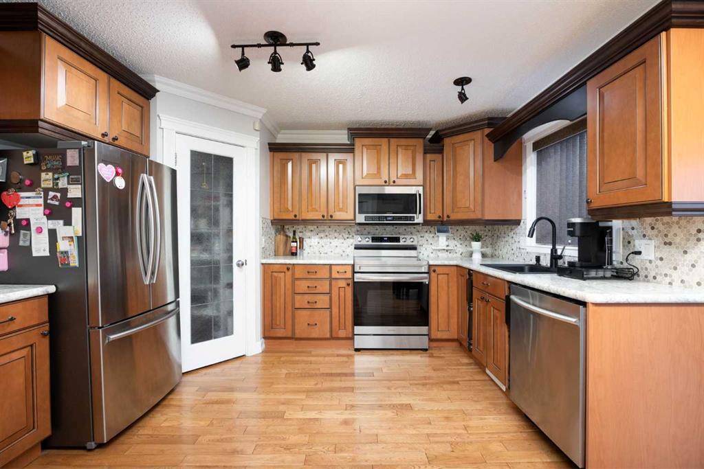 Welcome to 122 Rattlepan Creek Crescent! This well-maintained 4 bedrooms and 2.5 bathrooms family home offers 2,135 sq ft of living space, a HUGE 31x23 DEATCHED HEATED GARAGE built in 2010, driveway with 3 more parking spots and CENTRAL AIR CONDITIONING. As you step in the front door, you will be welcome into the bright living room with hardwood flooring and gas fireplace, next is the dining room and at the back is the large kitchen featuring plenty of wooden cabinetry, a corner panty and a breakfast nook next to the sliding doors for easy access to the rear deck. To complete the main floor is 2-piece bathroom with laundry. On the upper level, you will find 2 good size bedrooms and the large primary bedroom with a beautiful wood panel wall, a huge walk-in-closet and direct access to the main 4-piece bathroom. In the basement is a family room, one more bedroom, a 3-piece bathroom, a storage room and a laundry room with second set of appliances and a door to access the yard. The backyard has a large deck perfect for entertainment and the huge garage has more than enough space for extra storage. Located in a quiet, family friendly neighborhood, close to school, playgrounds and walking trails. Call today to book your appointment to view this beautiful family home!