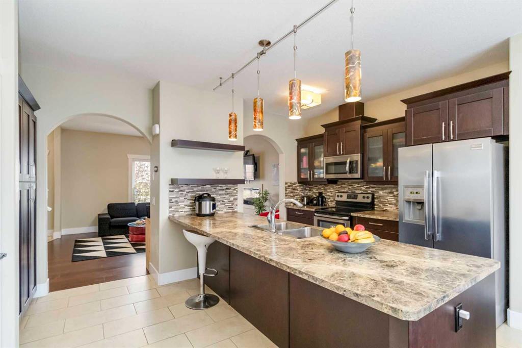 Upstairs, you’ll find three well-sized bedrooms, a 4-piece bathroom, and a handy laundry area. The primary suite is a true retreat with a 5-piece ensuite featuring double sinks, a jetted tub, generous vanity storage, and a walk-in closet.