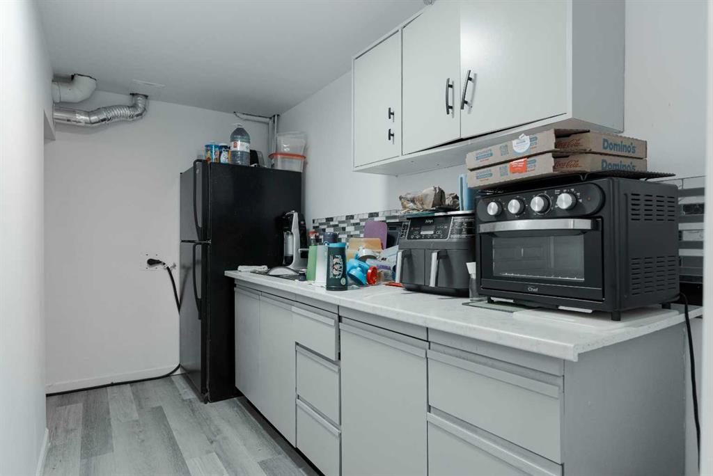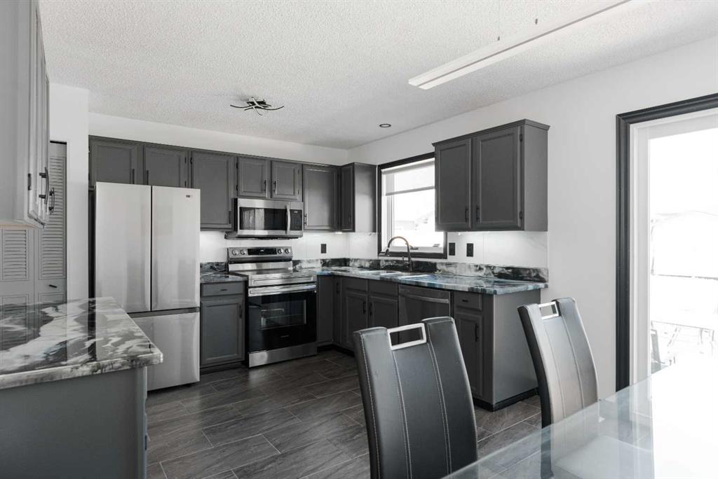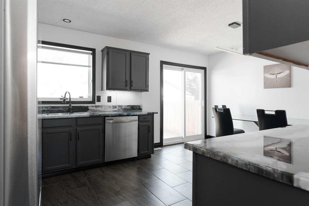 Welcome to 146 McConachie Crescent – the total package! This updated bungalow in the heart of Dickinsfield checks all the boxes — 5 bedrooms, 2.5 bathrooms, a fully finished basement with a separate entrance, a heated double garage, and loads of parking for all your toys. Sitting on an oversized 6,216 sq ft. Lot, you’ve got a long concrete driveway that can fit multiple vehicles, plus room for your RV, boat, trailer — you name it. The garage is heated, has 220v power, workbenches, and shelving already set up. Over the last two years, this home has seen some serious updates: • New shingles (2022) • New sliding glass door and side window • Fresh grey and black exterior paint • New luxury vinyl plank floors • New stainless steel appliances • New light fixtures • Fresh paint throughout Inside, the kitchen’s been freshened up with painted cabinetry, a custom epoxy countertop that really pops, a white tile backsplash, and new gray tile floors. Off the kitchen, you’ll find a new patio door that leads you out to a levelled concrete patio — ready for summer hangouts. The main floor offers three bedrooms, including the primary bedroom with its own updated 2-piece ensuite. The main bathroom’s been completely redone, too, featuring a floating vanity, LED mirror, tile-shrouded tub, and black fixtures for a modern look. Bonus: there’s even a 2-in-1 washer/dryer right on the main level to keep things easy. Tucked behind a custom barn door, you’ll find access to the basement, where the upgrades keep coming. Downstairs offers two more good-sized bedrooms, a family room, a wet bar/kitchenette with full fridge and cabinetry, a second laundry hookup, and another updated 4-piece bathroom. It’s a perfect setup for roommates, family, or even guests who want their own space. The backyard is fully fenced, there’s a storage shed, and the garage is ready for whatever you need—tools, projects, or just keeping your truck warm in winter. You’re also steps away from Birchwood Trails, parks, schools, and a handy little shopping plaza with a convenience store, gas station, pizza place — everything you need close by. If you’re looking for an affordable, move-in-ready home with many updates and plenty of space, this is the one.
