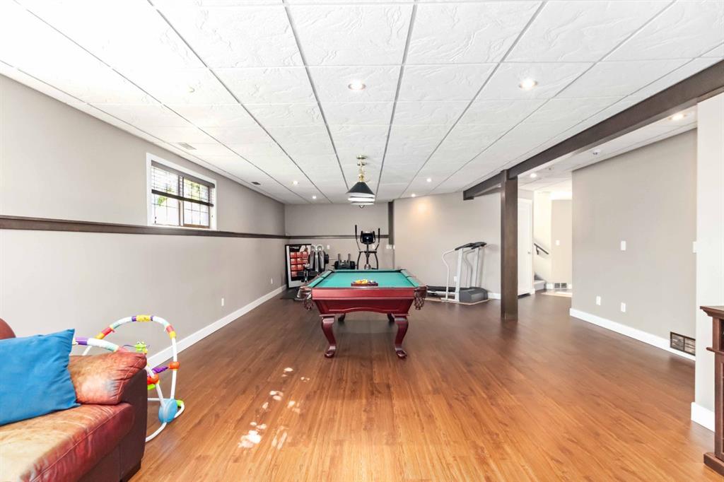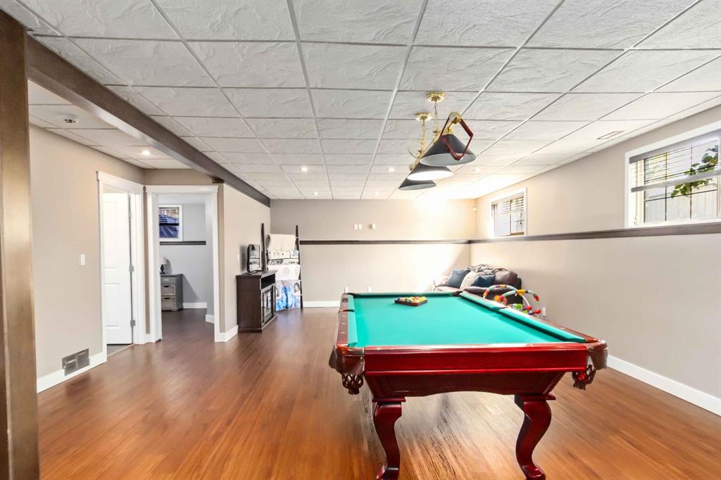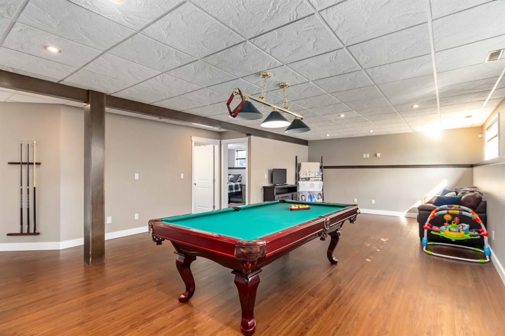 The main floor and entryway are designed with family living in mind, while the expansive basement recreation room includes a pool table and provides the perfect space for entertaining or relaxing. Each bathroom is equipped with a bathtub, ideal for families with children.