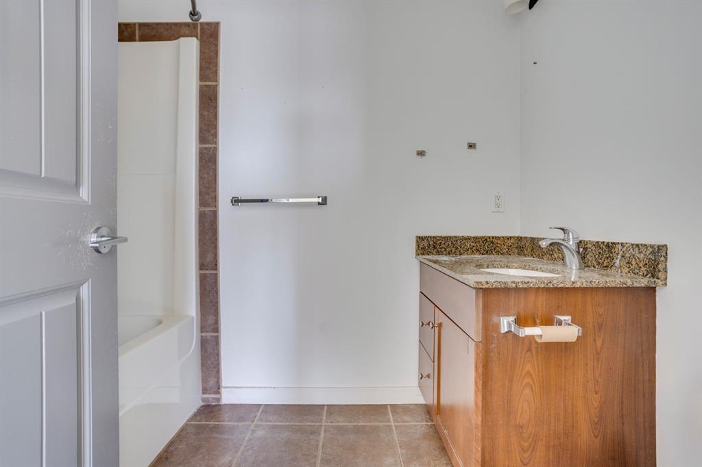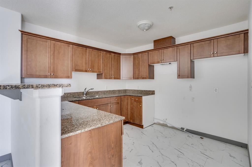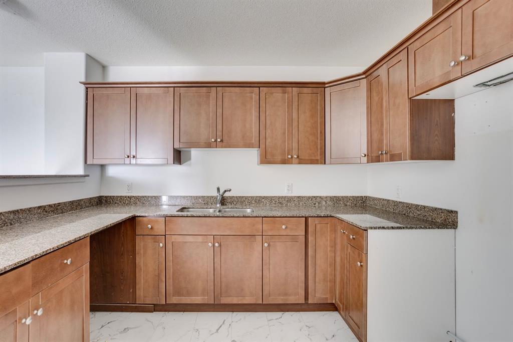 The functional kitchen is equipped with ample cabinet storage, sleek granite countertops, and an eat-up breakfast bar—ideal for casual meals or entertaining guests.