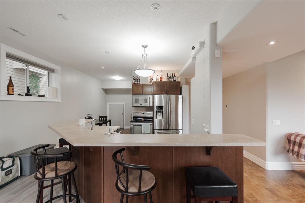 Downstairs, the walk-out basement is bright, spacious and very impressive featuring a legal suite with high ceilings, an abundance of natural light, tile and luxury vinyl plank flooring, and a Napoleon fireplace that adds warmth and style. The kitchen offers a large eat-up island, stainless steel appliances (fridge 6 years old), and plenty of storage. A full bathroom with a jetted tub and in-suite laundry complete the space, making it ideal for rental income or extended family.