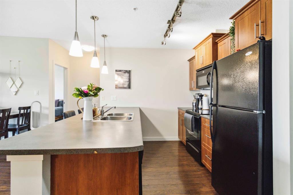 Welcome to Unit #3609 in The Summits at Eagle Ridge. A TOP FLOOR, FULLY FURNISHED condo where all you’ll need to bring is your clothes and your toothbrush. This beautifully maintained 2 bedroom, 2 bathroom home blends comfort, style, and convenience in one of Fort McMurray’s most sought after concrete built communities. Inside, you’ll find durable vinyl plank flooring, 9’ ceilings, and an open concept layout that flows seamlessly from the kitchen to the dining and living spaces. The kitchen is both functional and stylish, with plenty of cabinetry, a large eat up island, and clean finishes that suit any decor. The spacious primary suite features a walk through closet and private 4 piece ensuite, while the second bedroom is tucked on the opposite side of the unit for added privacy and sits next to a second full bathroom, perfect for guests, a roommate, or a home office. In suite laundry with extra storage adds everyday convenience.One of the standout features of this condo is the private west facing balcony, where you can enjoy the beautiful evening sun and sweeping views, complete with a built in gas hookup for your BBQ. Additional highlights include AIR CONDITIONING, window coverings, a titled tandem heated underground parking stall, a titled storage locker, and the peace of mind that comes with concrete construction for excellent soundproofing. The Summits is a well managed, pet friendly building offering a fitness room, underground car wash bay, playground, visitor parking, and air conditioned common areas. All of this is just steps from scenic trails, schools, bus routes, and the shops and restaurants at Stoney Creek Village.Whether you’re a first time buyer, downsizer, or investor, this condo is truly move in ready. And with the option to purchase it fully furnished, it’s a complete turn key package. Condo fees are $604.14 per month and include heat, gas, and water. Book your private showing today and see why Unit #3609 checks all the boxes.