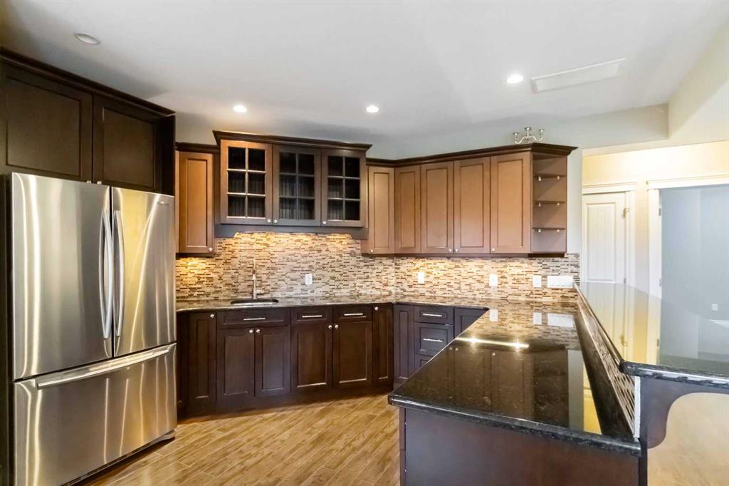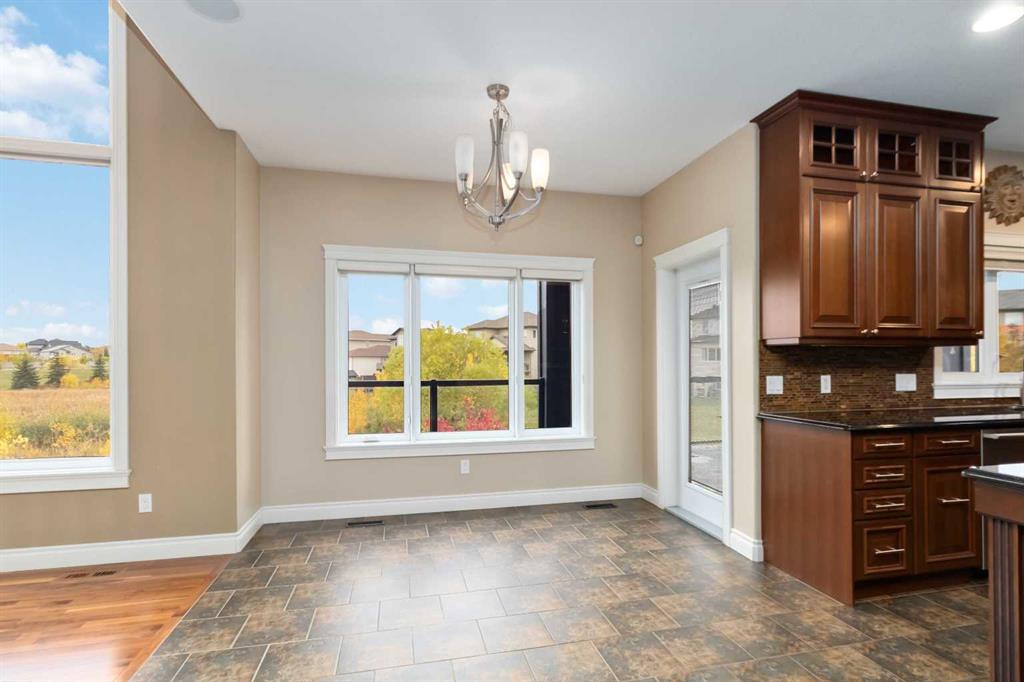 WELCOME TO 243 WILDROSE STREET, A CUSTOM-BUILT HOME IN ONE OF FORT MCMURRAY’S FAVORITE LOCATIONS, IN THE CUL DE SAC ON THIS EXECUTIVE STREET BACKING GREENSPACE AND POND, WITH A TRIPLE TANDEM HEATED GARAGE AND OVER 3700 SQ FT OFG LIVING SPACE. Original owners are saying goodbye to their stunning home in which they had custom built with a WALK OUT basement, and jaw dropping curb appeal that has repeatedly won in the Communities in Bloom competition. The exterior offers the rare find of stucco finish, stamped concrete walkways and driveway, a fully fenced and professionally landscaped yard, the rear yard finished with artificial turf, Kwik curb, upper deck and lower concrete patio along with direct access from your yard to walking paths. Not only is the exterior a rare find, so is the interior. Step into this custom design and not the beautiful foyer title work that leads to a large front sitting room or office, then you are engaged by the breathtaking views from the windows that fill the entire wall in the great room. The Great room features hardwood floors and a floor to ceiling feature wall of stone that offers a gas fireplace. The open concept living area continues with a top of line kitchen featuring solid wood cabinetry, granite counter tops, custom range hood, built in appliances, including a gas stove. In addition, you have a massive walk-through pantry with windows. The dining room overlooks your yard and features pond views and garden door leading to your covered deck with glass rails. In addition, on this level you have a 2-pc powder room, large walk-in mudroom and closet. The staircase leads you to the upper level with a large landing that overlooks the main level and features 4 BEDROOMS UP and 2 full bathrooms, along with upper-level laundry. The Primary bedroom offers a walk-in closet an ensuite with heated title floors, jetted tub, and walk in shower with body sprayers. The entire main and upper level is covered in hardwood and tile floors. The lower-level features large above ground windows on this walk out basement that is finished with a full kitchen with that features a wraparound breakfast bar, a full set of appliances, large family room and 2 large bedrooms and full bathroom and laundry. All completed with the same luxury finishes as upper level. To complete this lower level, you have double garden doors leading to your lower concrete patio. OTHER FAB FEATURES INCLUDE A HIGH VELOCITY HEATING SYSTEM WITH INFLOOR HEAT IN BASEMENT AND GARAGE, CENTRAL A/C, HUNTER DOUGLAS SILOUETTE BLINDS. This an excellent opportunity to own an executive home in a sought-after neighborhood, close to schools, shopping and more. Call today and schedule your personal tour of the remarkable home today.