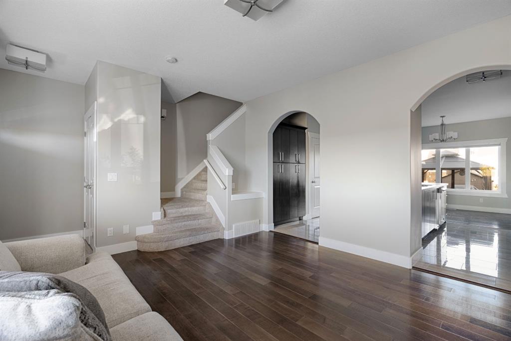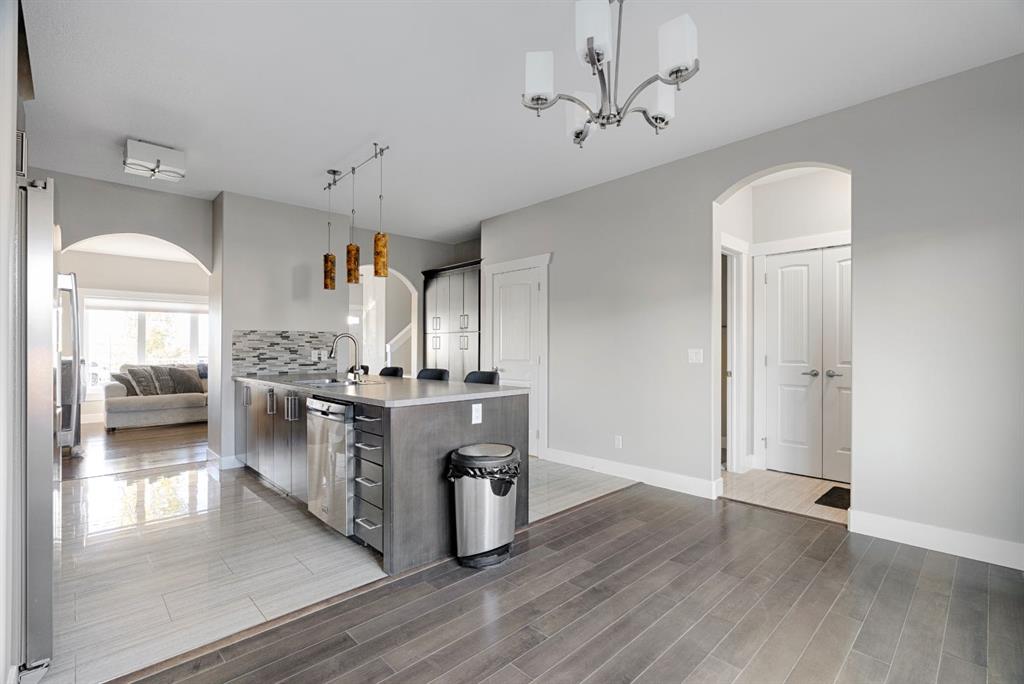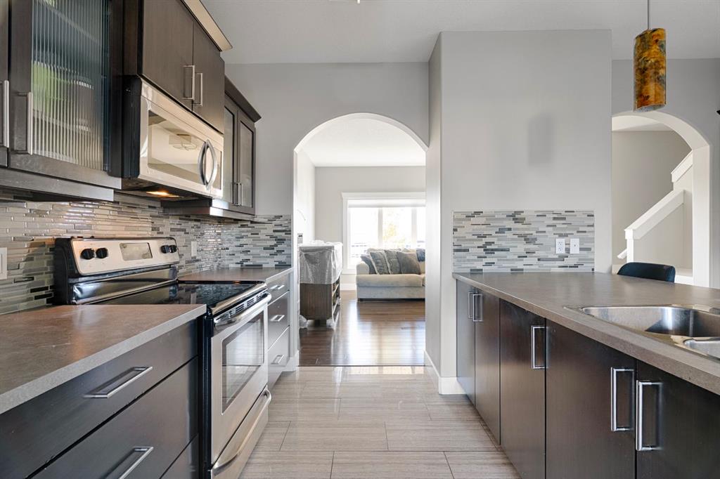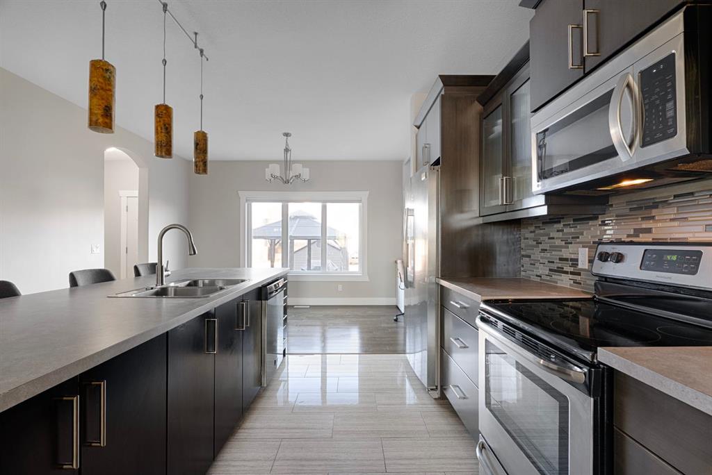 The kitchen is both stylish and functional, featuring ample counter space, a convenient eat-up bar, sleek ceramic tile, + maple cabinetry with soft-close doors and drawers. Under-cabinet lighting highlights the full stainless steel appliance package. The cabinetry extends into the dining area with a built-in workspace, open shelving, and a butcher block countertop. Just off the dining area, a half bath and custom built-in bench with closet that leads to the backyard. Enjoy summer evenings on the oversized deck complete with a pergola and a storage shed. Upstairs, you’ll find three spacious bedrooms, two full bathrooms, and the convenience of upper-level laundry. The primary features a beautiful 4-piece ensuite with dual sinks, a jetted tub, + an impressive walk-in closet. The fully developed lower level offers a separate entry, matching finishes to the upper level, 9 ft ceilings, and a well-designed layout featuring a generous recreation space with a wet bar + full-size fridge, a second laundry area. Two additional bedrooms, and a 4-piece bathroom—perfect for guests or extended family. Immaculate, functional, and move-in ready—this Parsons North home truly has it all! Call to tour today!