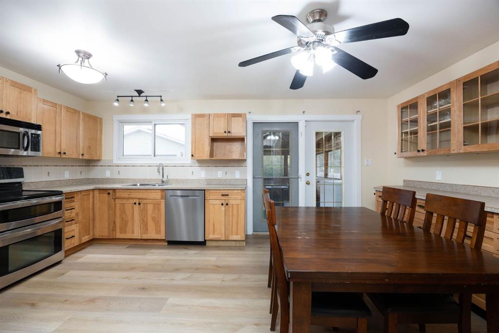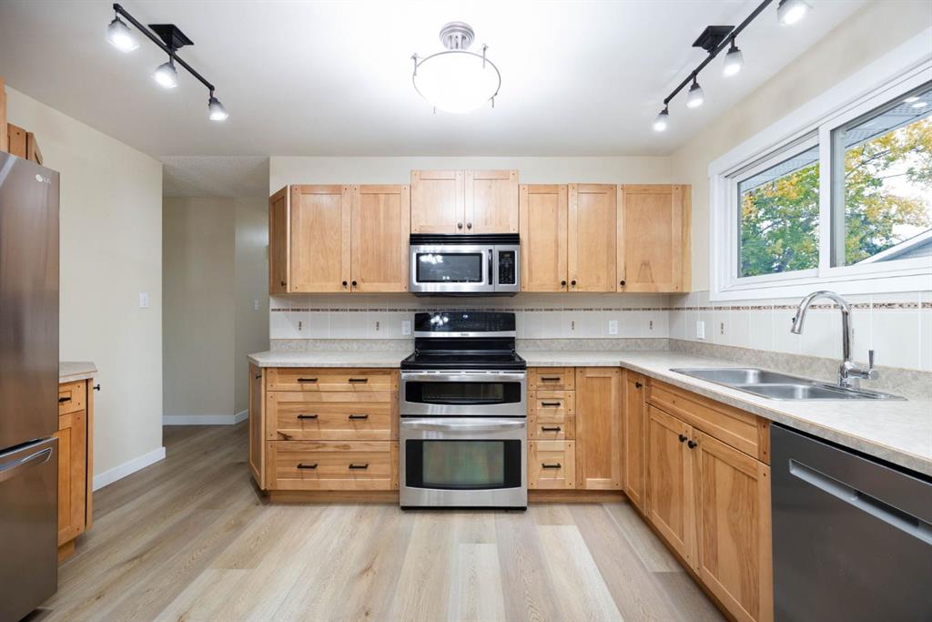 Welcome to 449 Signal Road, where timeless charm meets modern upgrades across from Greenbelt in the heart of Thickwood! This move-in-ready 5 bedroom bungalow has been professionally renovated from top to bottom — both cosmetic and functional — offering comfort, style, and unbeatable value. Step inside to be wowed by the natural wood styled wide LVP flooring that flows seamlessly throughout the main floor, while enjoying peaceful views of the greenbelt through the window in the spacious living room. Natural maple shaker cabinetry surrounds all walls of the kitchen, while allowing the stainless steel appliances to steal the show! No shortage of cabinetry or counterspace in this updated kitchen with direct access the 3 season covered back deck — perfect for morning coffees or evening BBQs. The beautifully updated bathroom is designed to impress, featuring double vanities and a sleek subway tile tub surround that adds a touch of modern elegance. The basement doubles your living space with a large family room (truly two rec spaces into one), a wet bar which can flex as a kitchenette, two additional bedrooms, a full bathroom, and a dedicated laundry room! Are you Looking for space for all your toys and tools? You’ve come to the right place! This 26’8” x26’6” heated detached garage is the ultimate man cave, boasting 10’ ceilings, an 8’ door, 220v connections and a built in bar - a home within the home! The fully fenced and landscaped backyard offers the perfect blend of relaxation and recreation, complete with a cozy firepit and plenty of space for a trampoline or your favorite outdoor activities. The extensive list of renovations include: central AC (2024), furnace (2024), garage shingles (2022), house shingles (2015), main floor bathroom (2024), painting (2024), main floor LVP and trim (2024), fence (2017), dishwasher (2024), Fridge (2023), washer and dryer (2020), and more! Not to mention that the electrical has received a full professional makeover between a new Siemens Electrical panel and replacement of all electrical outlets and switches in 2024. This property truly checks all the boxes — renovated, spacious, move-in ready, and steps away from nature’s beauty: the Birchwood Trails. Call to book your viewing today!