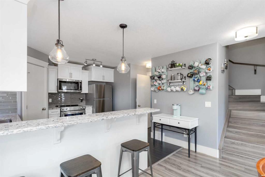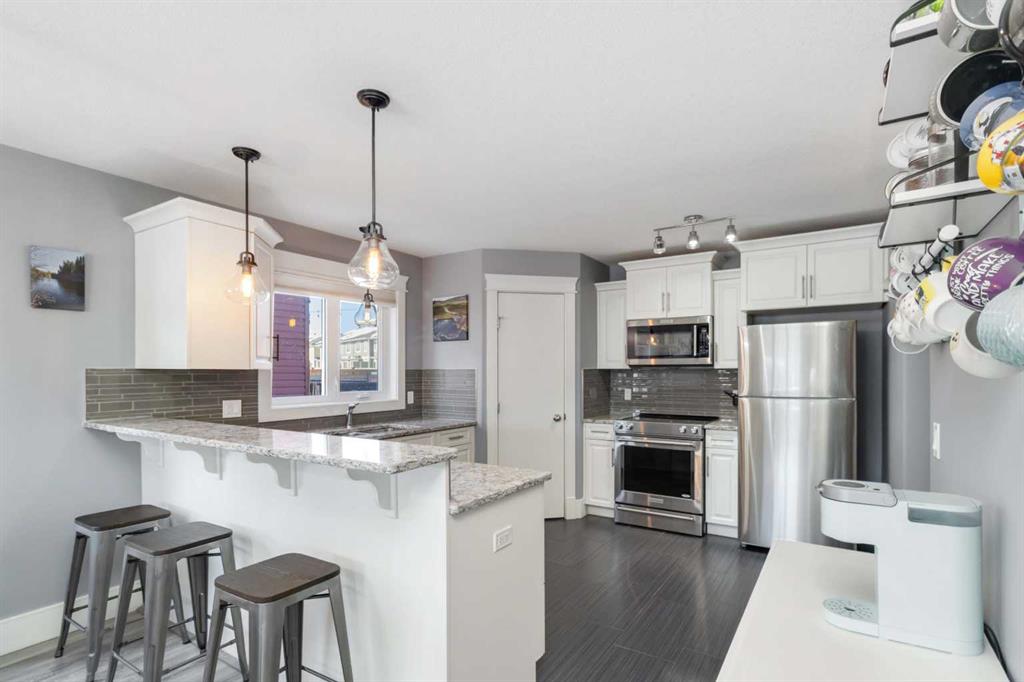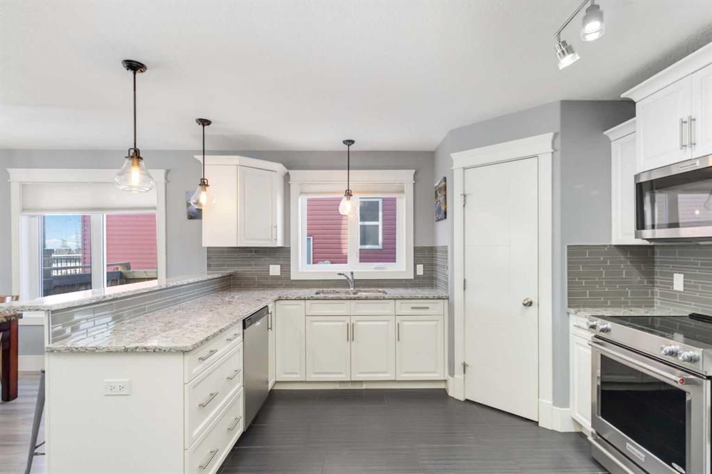 SUPERB STONE CREEK HOME BUILT IN 2017 OFFERING GREENBELT VIEWS, 5 BEDROOMS, 4 BATHS, OVERSIZED DETACHED HEATED DOUBLE GARAGE WITH 8FT DOOR, NO CARPET HOME, GORGEOUS WHITE KITCHEN WITH QUARTZ COUNTERTOPS, A SEPARATE ENTRANCE AND 2 LAUNDRY ROOM LOCATIONS. This value-packed, quality-built home begins with an excellent location for those who want to be close to Birchwood trails, quick, easy access to site and city bus routes, and walking distance to shopping and more. The floor plan of this fully developed home offers tons of versatility for those who don't want a mortgage helper in the basement and for those who do. The layout offers functionality of both, as you step inside this spacious home with just under 2000 sq ft of living space, which has been beautifully finished to the sought-after modern farmhouse finishings. The main level space features a large front foyer that opens up to your bright front living room with luxury laminate flooring, this open concept living area continues with a dining room, and then the stunning kitchen featuring white cabinetry, quartz countertops, eat-up breakfast bar, stainless steel appliances with a new fridge and stove, alongside of a built in over the range microwave, corner pantry and backsplash. The main level continues with a main floor laundry room, back mud room, large closet, 2 pc powder room, and direct access to your backyard and detached garage. The upper level offers 3 generously sized bedrooms. The Primary bedroom offers greenbelt and trail views, along with a walk-in closet and full ensuite. This entire level continues with the luxury vinyl plank. Both the ensuite suite and 4pc upper bathroom have tiled floors. The fully finished basement features a family room, 2 bedrooms, and a full bathroom. Both the main and lower levels have 9ft ceilings, making this home bright and airy. The lower level features vinyl plank floors and a large storage room, and laundry room. The exterior of this home has been fully landscaped and fenced and features an oversized double detached heated garage with high ceilings and an 8ft door to be able to park your truck. In addition, you have a large deck and a built-in outdoor kitchen with a gas BBQ. Other features of this turn-key move-in-ready home is central a/c. This home offers all the wants and needs you have on your checklist, call today for your personal tour.