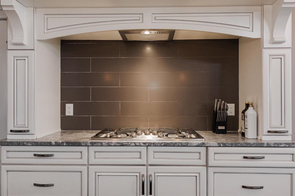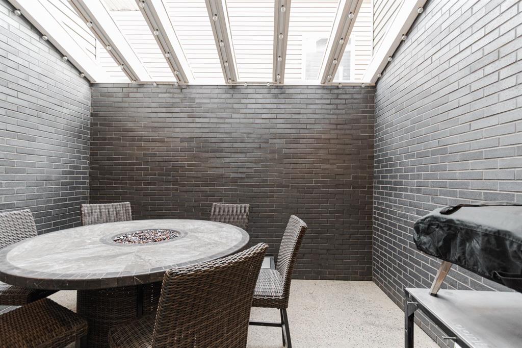 Inside, the home is warm and inviting with hardwood floors, built-in audio by Audio Design with a receiver included, and an open concept layout centred around an incredible stone veneer gas fireplace in the living room. The kitchen is a standout, featuring rich cabinetry, granite countertops, a two-tier island, double oven installed in 2023 and a dishwasher replaced in 2024. The dining area overlooks the backyard and offers access to the deck, making indoor-outdoor living seamless plus enjoy the privacy the outdoor enclosed terrace provides for intimate outdoor dining. Zebra blinds add a clean and modern finish throughout the main floor.