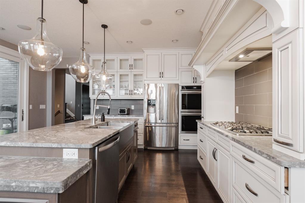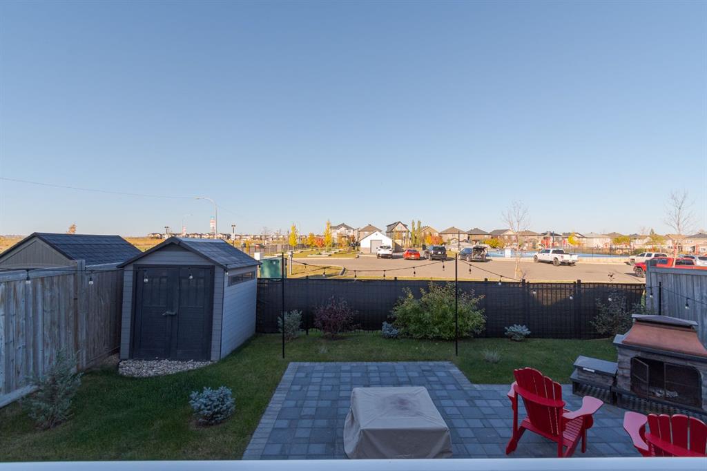 Curb appeal begins with a double driveway and attached heated double garage, complete with in-floor heating and plenty of space for parking and storage. The walkway leads to the covered side entry, and the landscaped yard continues into the back where you’ll find a dura deck with gas line for your barbecue, landscaped stone patio, shrubs and rock accents, and a storage shed all recently professionally completed by MK Landscaping. This outdoor space is perfect for entertaining or unwinding, with views of the park behind making it great for families. A rain barrel system is already in place for eco-friendly watering, and the outdoor gas fireplace is negotiable with the sale.