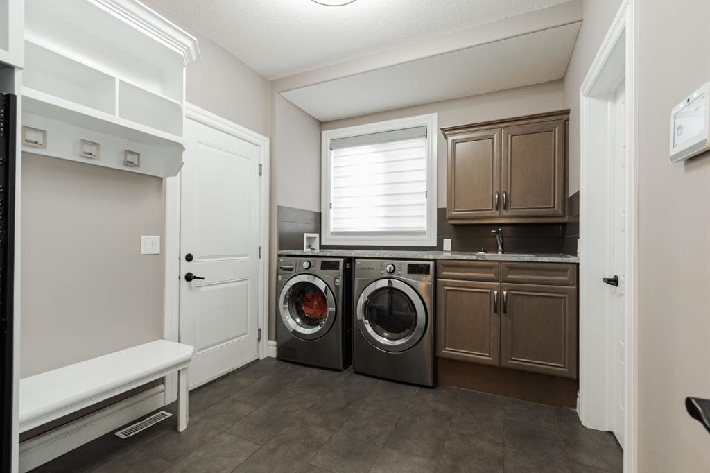 A main floor office provides the perfect quiet workspace with two windows for added natural light, and the mudroom offers main floor laundry for added convenience, along with a two-piece bathroom just off the garage entry.
