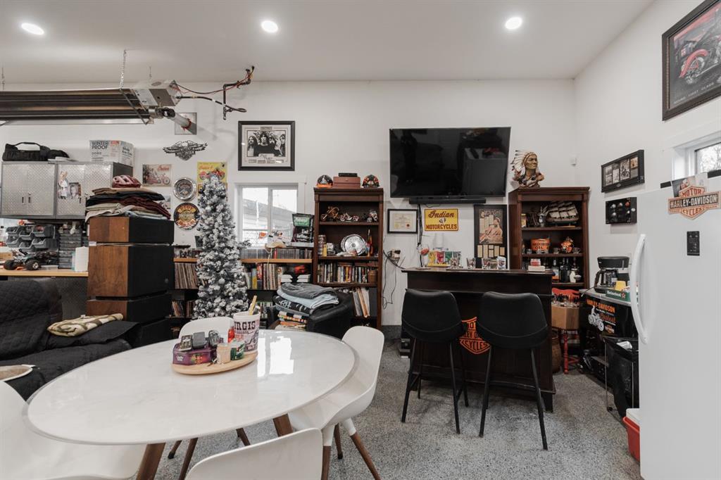 The showstopper of this property is the impressive 30x40 shop with a metal roof, 11’10” ceilings, and a full three-piece bathroom with in-floor heating. The shop is heated with gas radiant heater, finished with epoxy floors, and includes a dog-washing station, dry sump drain, hot and cold taps, 220V power, and two overhead doors with openers. Internet is hardwired directly to the shop, and several fixtures—including upper cabinets, tire rack, and receiver system—are included. Whether used as the ultimate year-round entertaining space or your dream workshop, it’s a showpiece that sets this property apart.