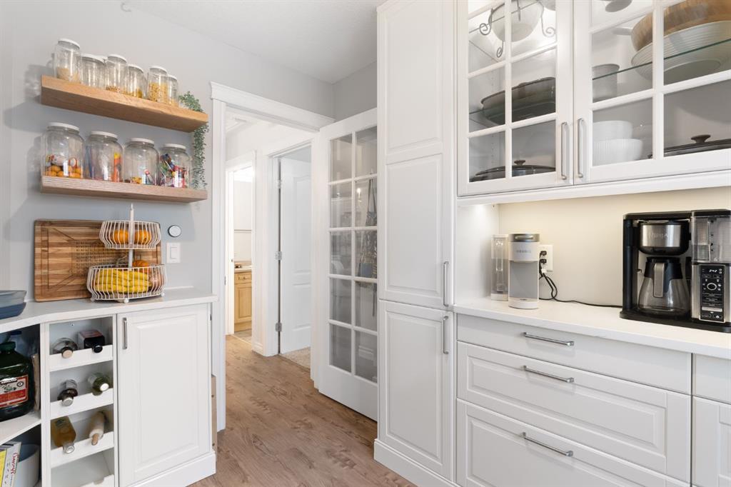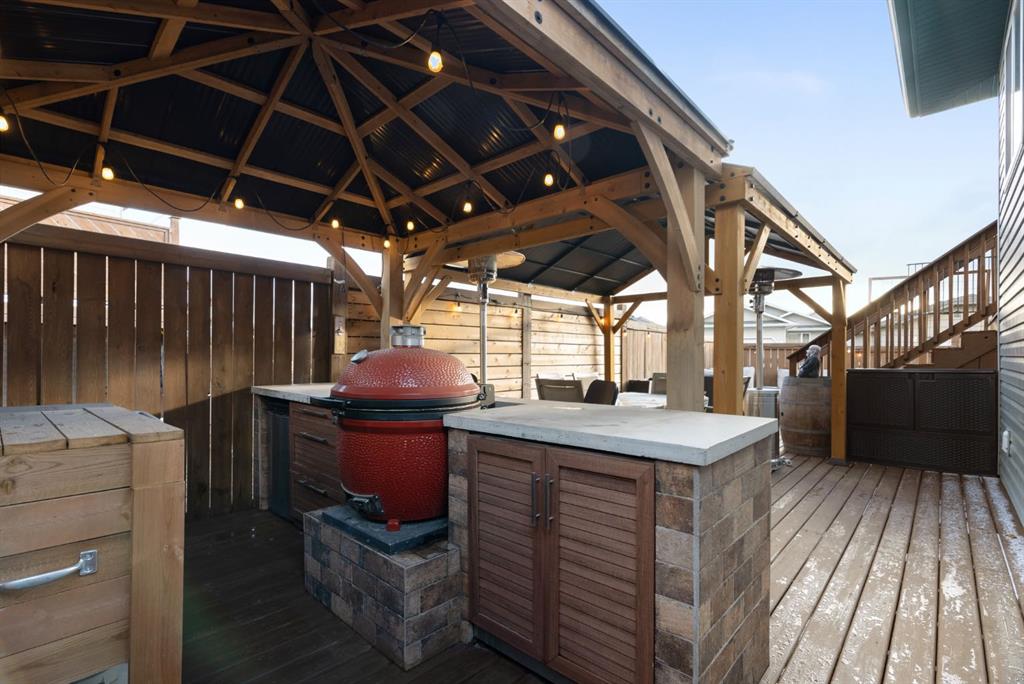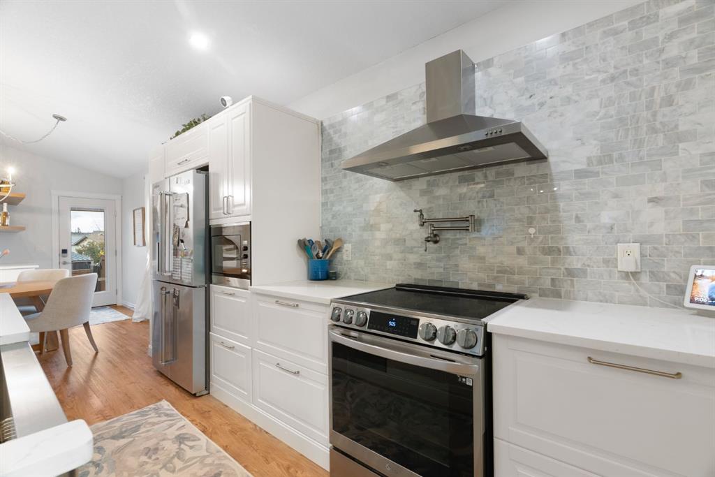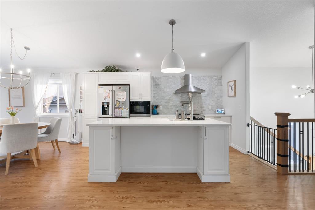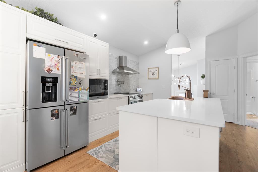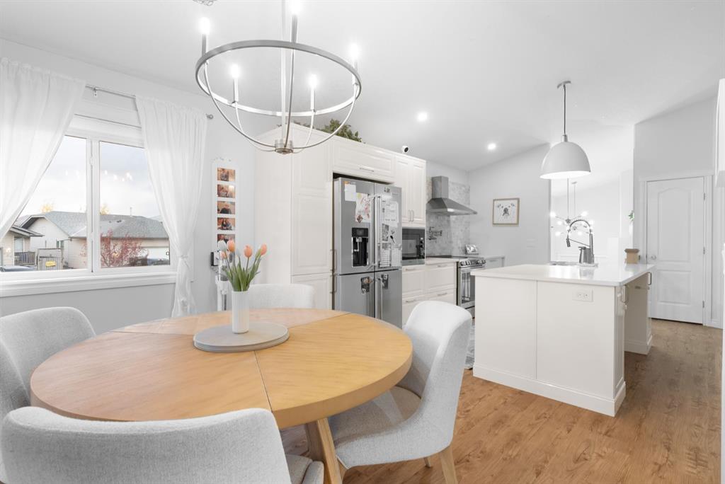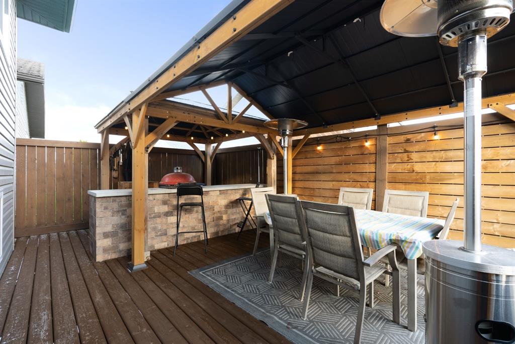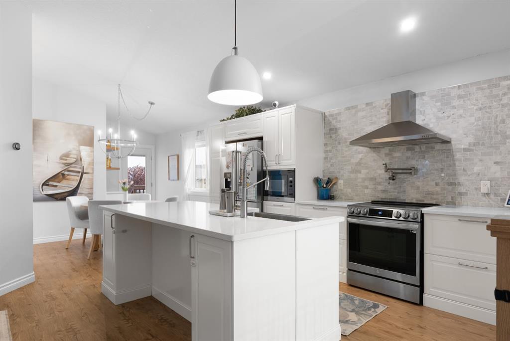 The open-concept main level is bright and inviting with vaulted ceilings and a timeless white kitchen showcasing quartz countertops, tile backsplash, an apron-front sink, stainless steel appliances, pot filler, and a large eat-up island. Additional kitchen features include a butler’s pantry, a broom closet, and a convenient beverage bar just off the dining area—ideal for entertaining! The living room, centered around a cozy natural gas fireplace, offers an open flow perfect for family gatherings. Step through the back door to your outdoor retreat: a large ground-level deck with a built-in outdoor kitchen complete with concrete countertops, stainless steel cabinetry, and a pergola providing shade and comfort. You also have a large fully fenced yard for all the activities! Back inside the primary suite features dual closets and with a 4-piece ensuite. A second bedroom and another full 4-piece bathroom complete the main level. The fully developed lower level offers an expansive family/recreation space adaptable to your needs, two additional bedrooms with built-in closets, + your third 4-piece bathroom, and a convenient laundry room. The home also features a newly installed hot water on demand system, ready for hookup. The heated and finished garage provides excellent storage and functionality. With modern updates, elegant finishes, and an entertainer’s dream outdoor space—140 Swanson Crescent is move-in ready and waiting for you to call it home. Book your private tour today!
