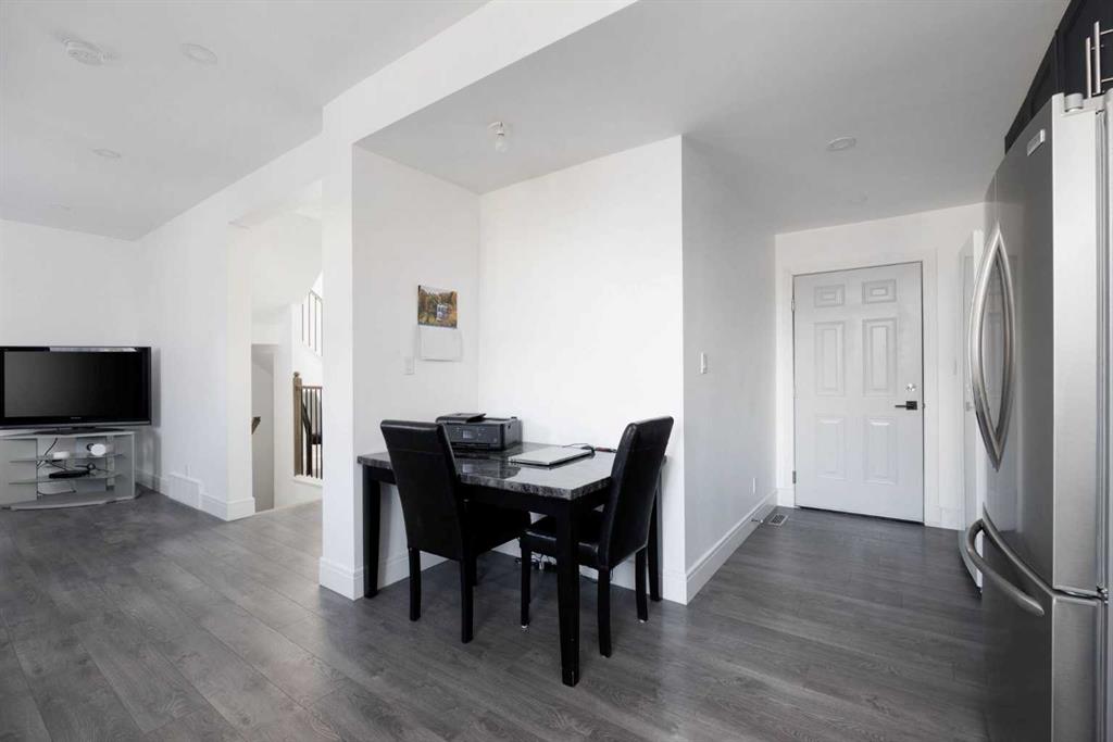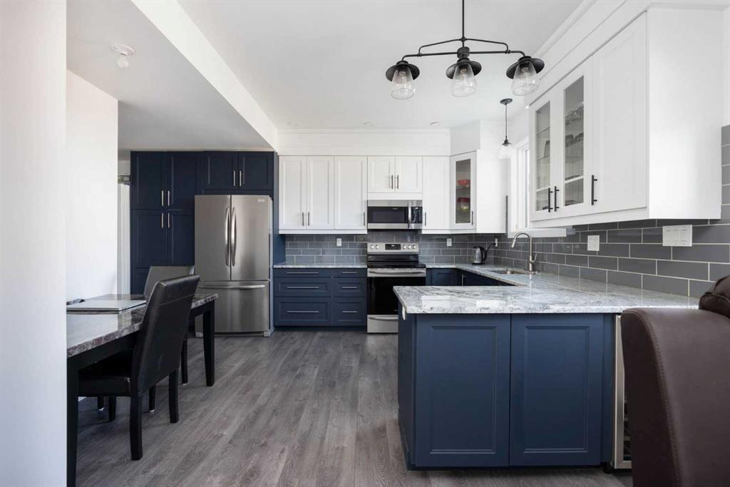 Step inside and you will notice right away there is no carpet. No fighting with the vacuum or worrying about spills. The main floor is open and bright, with the eat-in kitchen as the heart of the home. The two-tone cabinets that reach to the ceiling give it a custom look, and the extra counter space makes meal prep feel less like a chore. There is even a beverage fridge to keep drinks handy for family movie nights or backyard BBQs.