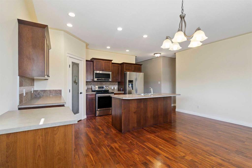 MOVE IN READY BUNGALOW WITH A WHOPPING 3100+ SQ FT OF LIVING SPACE, 6 BEDROOMS, 4 FULL BATHROOMS, IN-FLOOR HEAT, AND UPDATES THAT INCLUDE SHINGLES, FURNACE, BOILER SYSTEM, PLUS A DETACHED DOUBLE HEATED GARAGE ALL FACING THE GREENBELT AND BIRCHWOOD TRAILS. This is a rare find that shines with pride of ownership inside and out. Step inside this well-appointed home where you are greeted by gleaming hardwood floors throughout the main living areas, which include a front great room with gas fireplace that leads you to your bright kitchen with large island and eat-up breakfast bar, corner pantry, stainless appliances, and tiled backsplash. The kitchen overlooks the oversized dining area surrounded by a bank of windows. Plus, you have a garden door that leads to your rear deck. The main level offers 9ft ceilings throughout, plus 3 generously sized bedrooms. The primary bedroom offers a 5 pc ensuite with double sinks, heated tiled floors, and a large walk-in closet. This level is complete with a separate laundry room with cabinets and an additional 4 pc bathroom with heated floors. The lower level offers a separate entrance plus loads of space with the continued 9ft ceilings, in-floor heat throughout. There is a massive family room and games room, 3 additional bedrooms, and 2 full bathrooms, even the addition of a sauna. You also have a full laundry hookup downstairs, and cabinets for a kitchen or wet bar. On the exterior of the home, you have beautiful curb appeal, a double detached heated garage with in-floor heat. Plus, you have an additional parking stall beside the garage, which could also be used for RV parking. This home is perfectly located in Eagle Ridge, across from the greenbelt and Birchwood trails, in walking distance to two elementary schools, Eagle Ridge Commons Plaza, and quick access to site and city bus stops. This home is move-in ready and ready for immediate occupancy. Professional cleaning of the home and carpets has been completed. Call today for your personal tour.