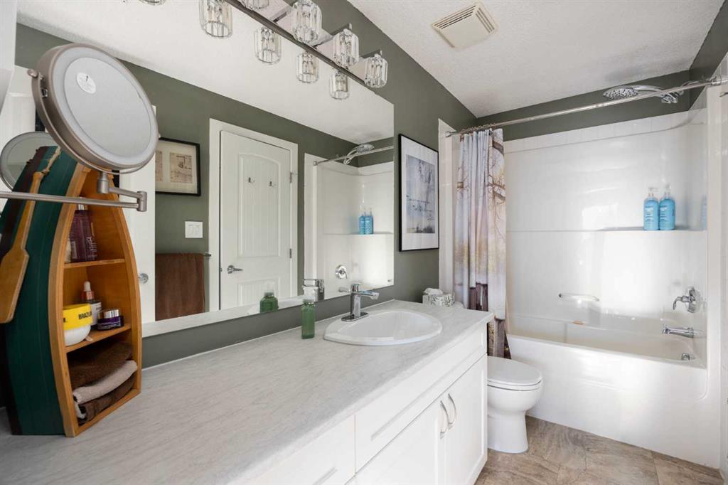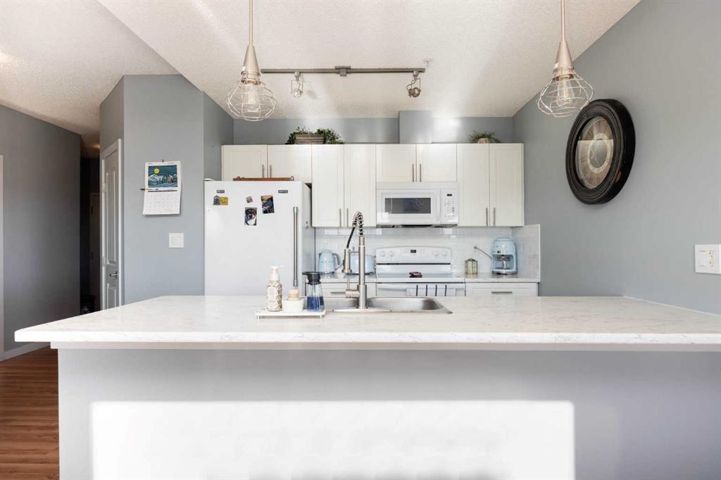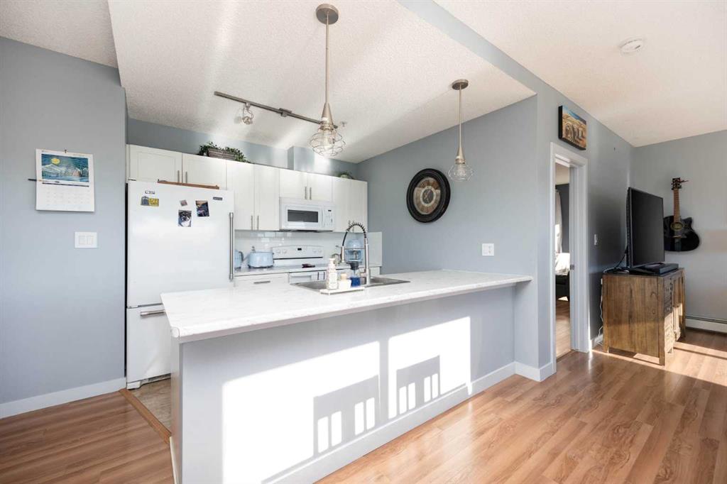 The modern galley-style kitchen features upgraded countertops, a stylish backsplash, newer appliances, pantry, and an eat-up breakfast bar—ideal for casual dining or entertaining. The generous primary bedroom includes a walk-through closet and a private ensuite, while the second bedroom offers ample space and direct access to the main bathroom, making it ideal for guests or a home office. In-suite laundry with an upgraded washer and dryer adds to the everyday convenience.