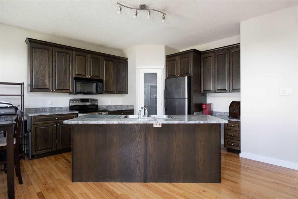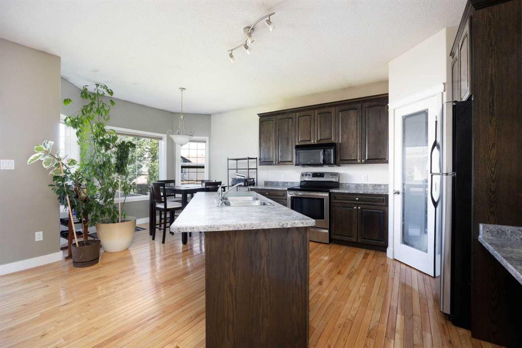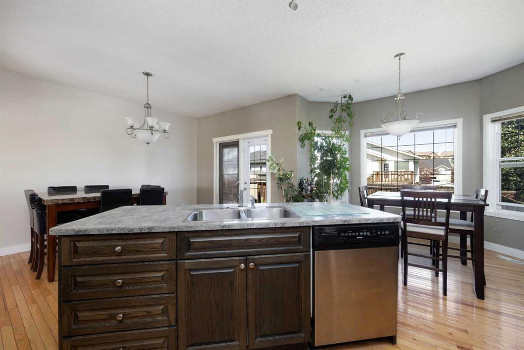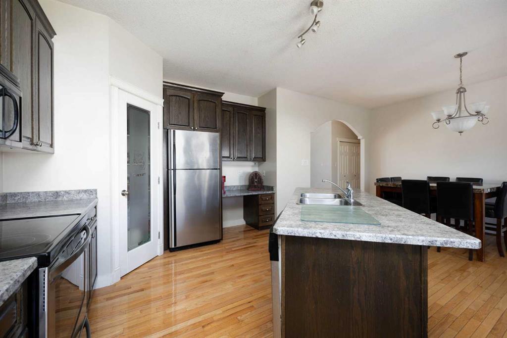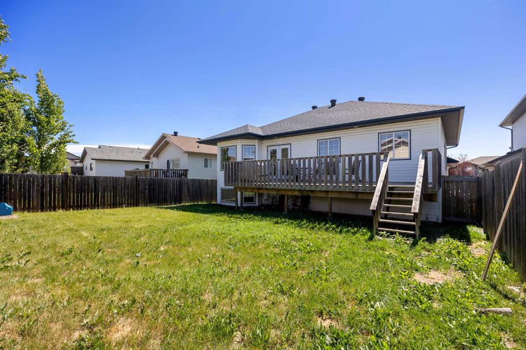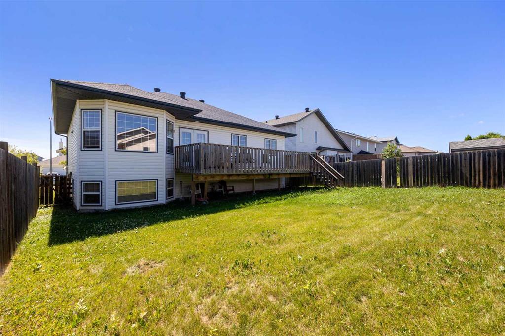 A RARE FIND! SPACIOUS and Inviting 5 bedroom, 3 full bathrooms of 2941 square feet of living space has so much to offer the savvy buy. Located IN PRESTIGOUS LAKEWOOD SUBDIVISION, this home features an oversized double heated garage and triple car driveway is PERFECT size for those boys with toys, and don't forget the huge fenced in back yard with deck that is the full length of the back of the home! The front foyer is spacious with high ceilings, and stairs leading to the basement or to the upper floor of the main home. The living room features a Floor to ceiling windows, hardwood flooring, that flows into the dining and kitchen area which features a huge island, walk in pantry, built in desk, great as a coffee bar, lots of cabinets and a breakfast nook. Off the dining room is French doors leading to a huge deck overlooking a big fenced yard. There are 3 generous sized bedrooms with the Primary bedroom having its own primary ensuite bath. There is another bath that is common to the other 2 bedrooms. The basement is developed with 2 bedrooms, bathroom, massive family room, a bar with rough in for future wet bar or kitchenette, in addition to a games room / or make it a media room for movie night. So many things to love about this home. Call now to view and START Packing! Bonus: Nestled near schools, shopping, ponds, parks, walking trails and more!