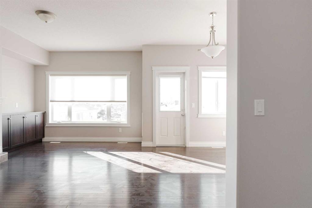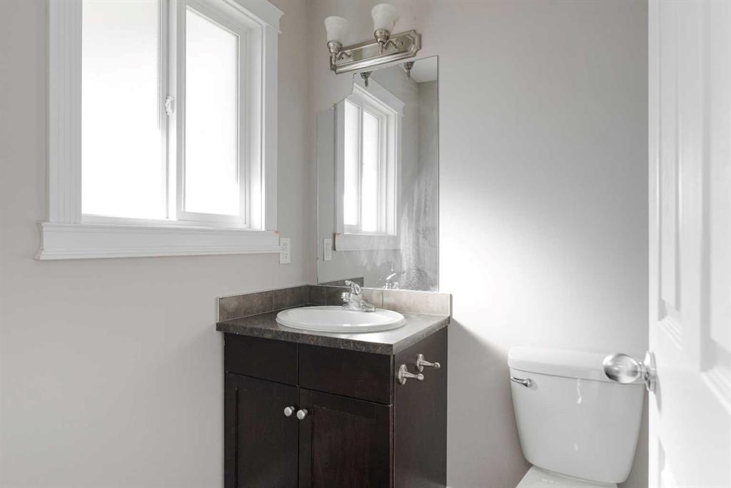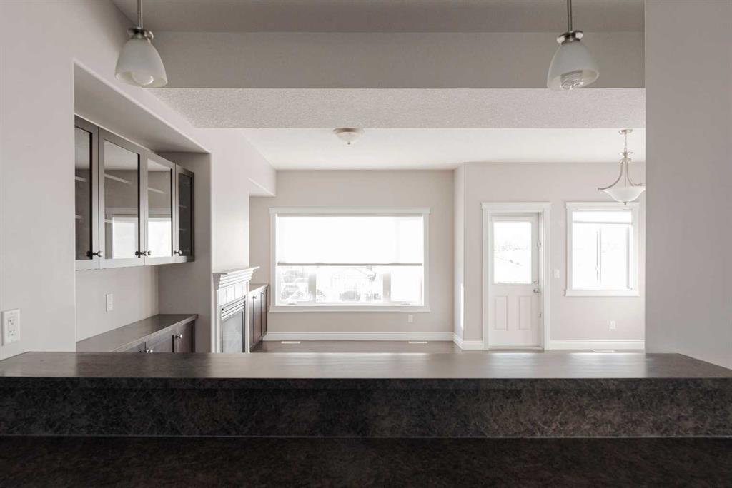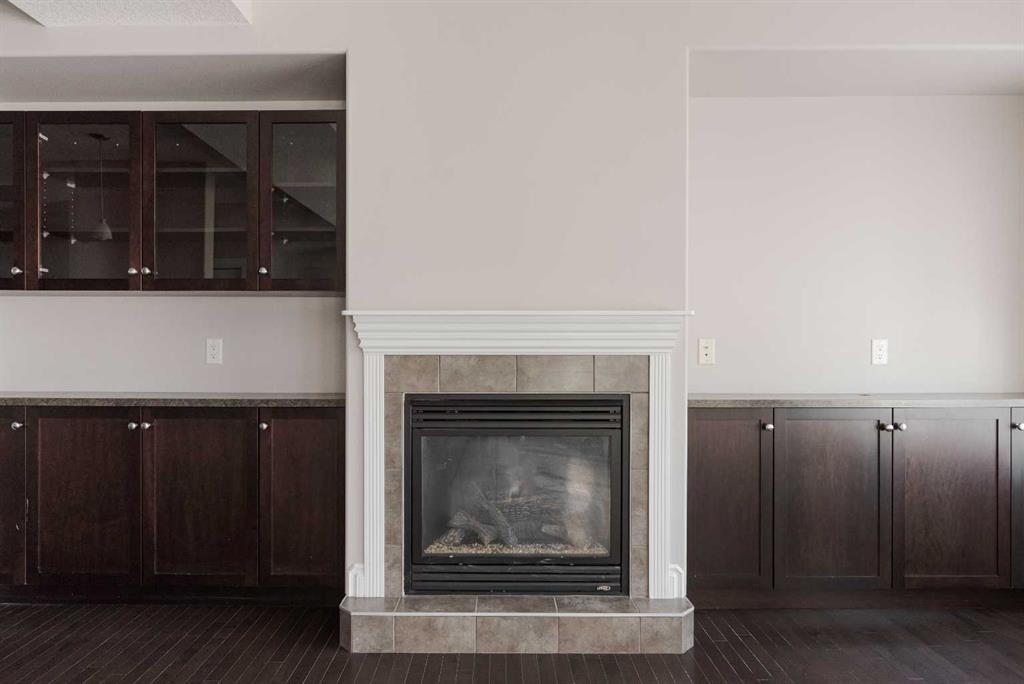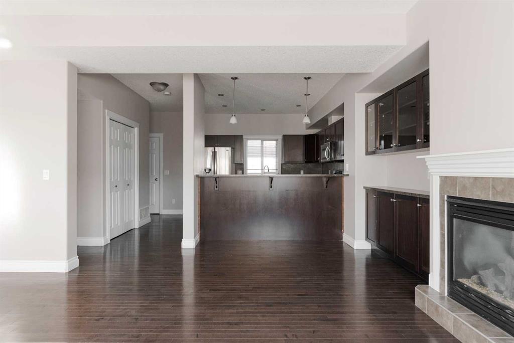 Step inside to an open concept main floor featuring a beautiful kitchen with stainless steel appliances, a wraparound breakfast bar, tiled floors, and plenty of cabinets. The living area includes a gas fireplace with built-in shelving, hardwood floors, and direct access to the back deck, perfect for relaxing or barbecuing. The main level also includes a two-piece powder room and laundry.