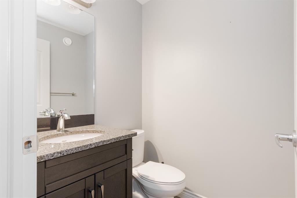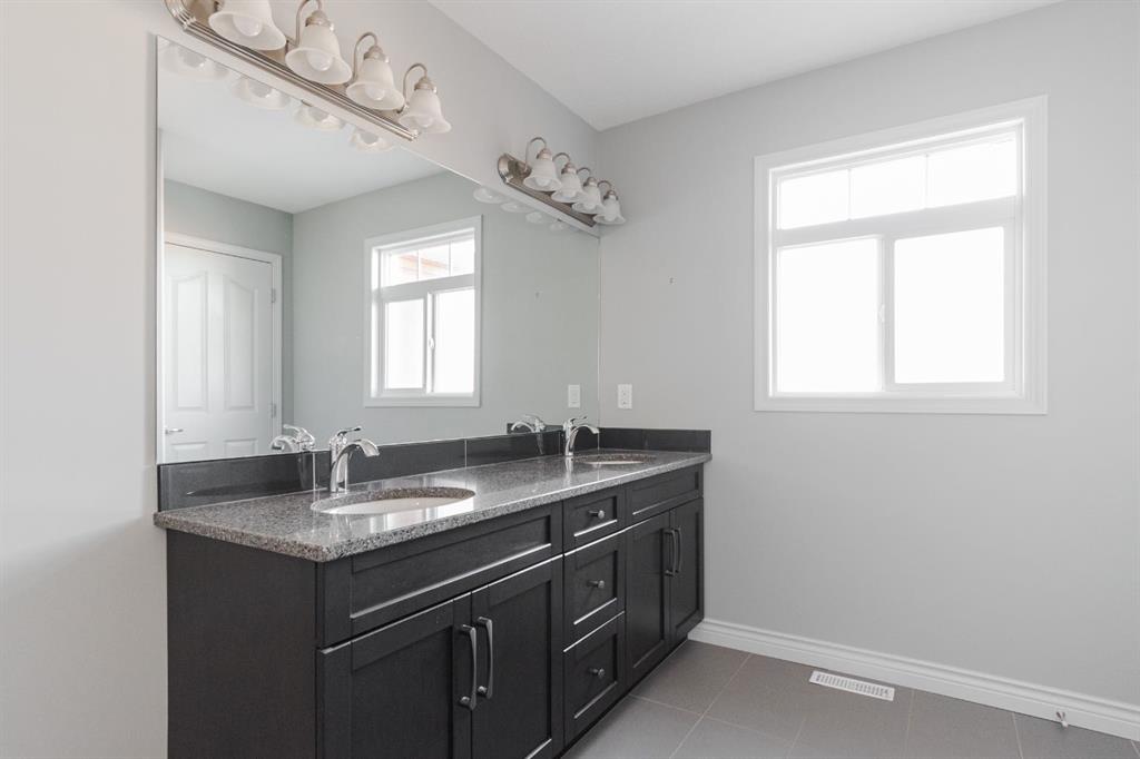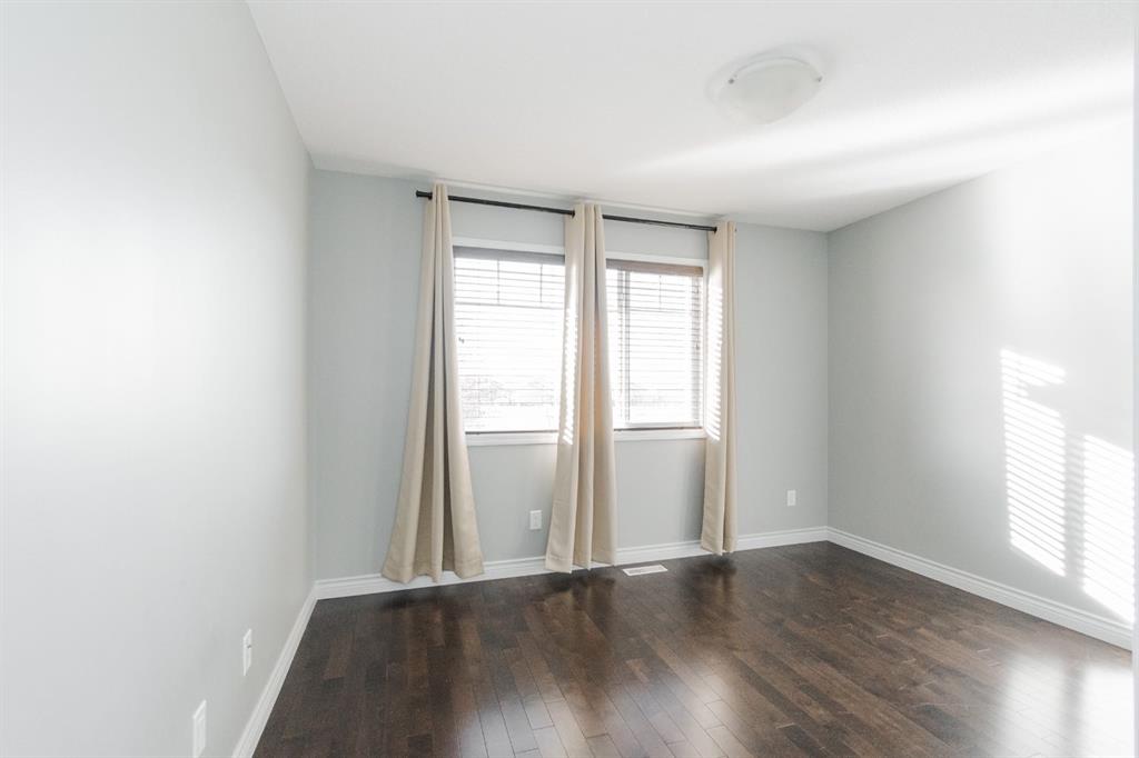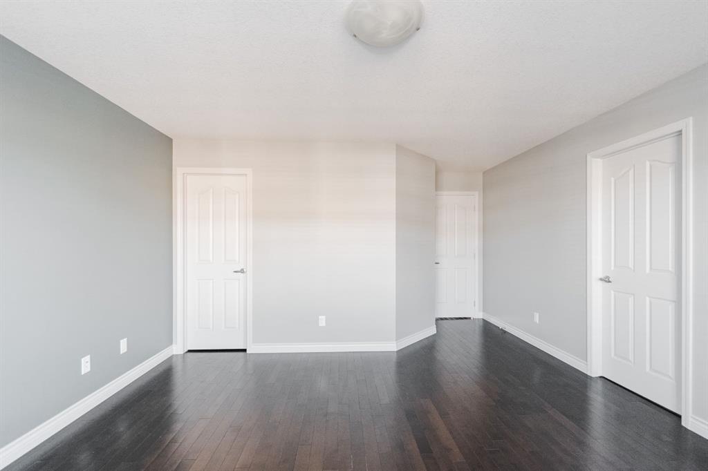 Upstairs, you’ll find two spacious bedrooms and a conveniently located laundry area. The primary suite offers a walk-in closet, room for a king-sized bed, and a beautiful five-piece ensuite with double sinks, quartz counters, and built-in linen closet. The second and third bedrooms are also generous in size and features custom built-in closet organizers. The four-piece main bathroom and upper hallway continue the home’s cohesive style, with quartz counters and quality finishes throughout.