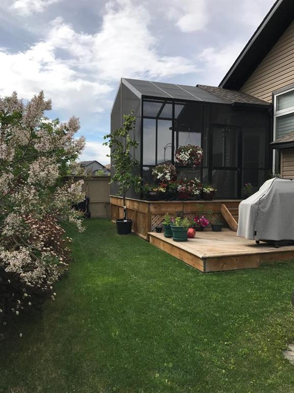 The backyard is a standout with hydrangeas, roses, beautiful gardens, and a gate that leads directly to the green space and trail system. The two tiered deck includes a screened in porch that was added when the home was built, a gas line for a barbecue, garden boxes, enclosed under deck storage, and a stone path that runs along the side of the home.