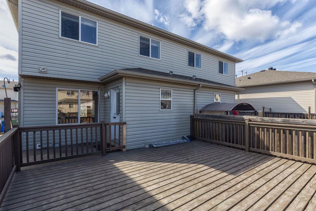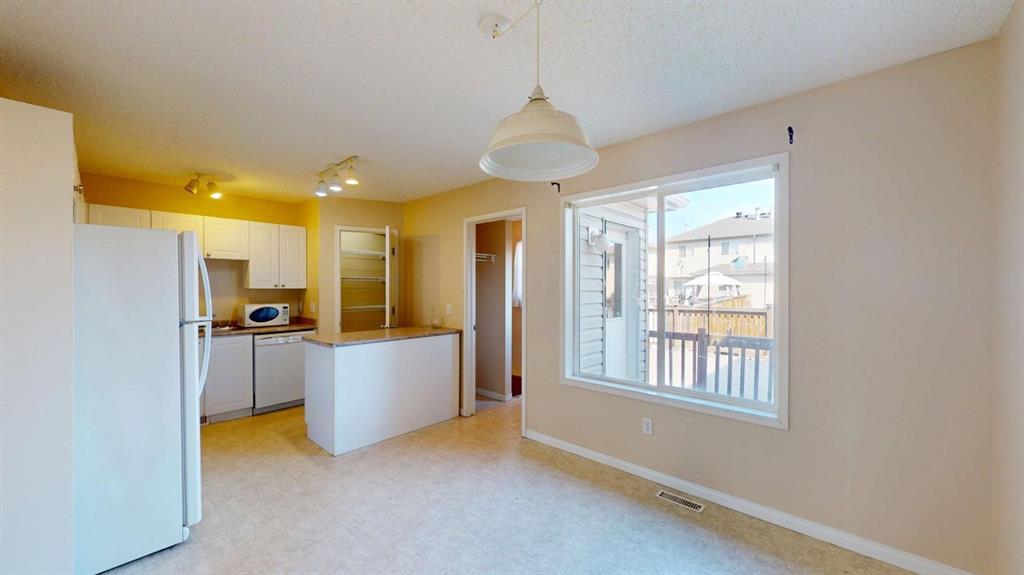 Welcome to 117 Kodiak Crescent, located in the subdivision of Bear Ridge! This half duplex is fully developed and would be an economical choice for anyone looking to get into the home buying market. With low condo fees and easy upkeep, this unit will please even the most discerning of buyers. Upon entering the main level from the double parking pad in front of the home, you are greeted with an inviting living space adorned with a gas fireplace that flows into the eat in kitchen, fully equipped with an island and corner pantry. Off the kitchen is a full sized deck that leads to the fully enclosed back yard, perfect for your four legged friends! The main level also offers a two piece powder room that conveniently doubles as the main floor laundry. Heading to the basement, there is one bedroom, a three piece bath with a stand-up shower, and another living room, complete with a fridge and sink, providing endless opportunities for entertaining friends. If it's privacy you're looking for, the separate entrance to the basement can be engaged by simply locking the door to the kitchen. Perfect if you have family on an extended stay! On the top level, are three generously sized bedrooms including the primary that has its own walk-in closet. The four piece bath and linen closet complete this floor. Within a one minute walk to the bus stop, great schools within walking distance, and the Birchwood Trails just across the main throughway, this is one property you don't want passing you by. The price is on pointe, and the low, low condo fees make it an easy choice.