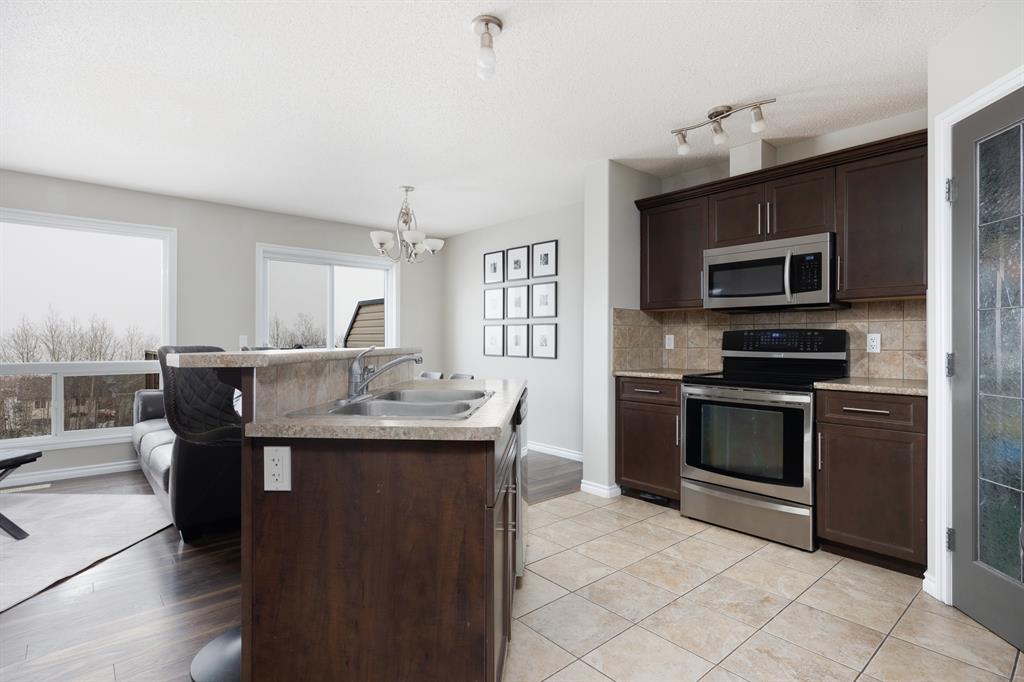 IMMEDIATE OCCUPANCY AND PANORAMIC RIVER VALLEY VIEWS, WALKOUT BASEMENT, BACKING A GREENSPACE, FULLY FENCED YARD, CENTRAL A/C. This is an excellent opportunity to own at an affordable price and have the ability to create some additional income in the fully finished basement with separate entrance in the basement wet bar and full bathroom and large room that is versatile to a bedroom. . To begin on the exterior of the home, you have an attached garage, front driveway, and a fully fenced and landscaped yard with an upper balcony and a lower covered deck, plus a dog run, gas BBQ hook up, and the bonus of backing a greenspace giving you a private back yard with no neighbours behind. Step inside to the bright and spacious main level that offers an open-concept living area with a functional kitchen featuring a wrap-around breakfast bar and large island, corner pantry, tile floors, and stainless steel appliances. The kitchen overlooks the living room with a corner gas fireplace and the dining area with sliding garden doors that lead to your upper balcony. The main living space gives you panoramic views of the river valley. The main level is complete with a 2 pc powder room as well as direct access to your attached garage. All levels of this home have been painted in recent years with a bright and desirable neutral color. Take the staircase to the upper level with 3 generously sized bedrooms. The Primary bedroom features a full ensuite with tile floors. The 2nd and 3rd bedrooms offer incredible greenspace and river views. The lower level of the home offers a fully finished walk-out basement, with large above-ground windows, a full bathroom, and a wet bar. This space is versatile for its usage. It can be your family room, or a bedroom with a separate entrance. This home is located in the prime location of Stone Creek and within walking distance to Stoney Creek Plaza, which offers shopping, restaurants, a gym, and more. Call today for your personal tour.