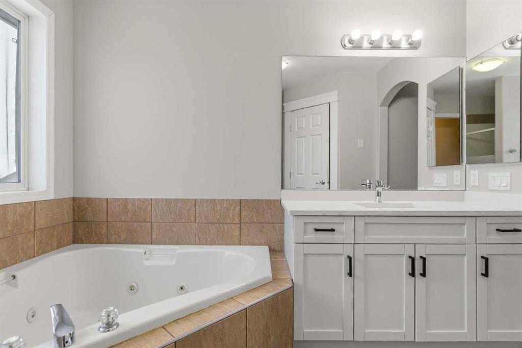 STUNNING MODERN FARMHOUSE DESIGN WITH WHITE CABINETS THROUGHOUT AND BRAND NEW QUARTZ COUNTERTOPS! This meticulously kept home is move in ready and offers immediate occupancy. Pride of ownership meets luxury as you step inside this home with 2700 sq ft of living space that is a fully developed 4 bedroom 4 bathroom home. The grand entryway opens up to a spacious main level offering a front office or den which leads you to your large living room with hardwood floors, gas fireplace and built in wall niches. The living space features large windows at the back of the home giving this main level tons of natural light and views of the amazing yard. The main level continues with the beautiful kitchen offering updated creamy white kitchen cabinets, black fixtures, quartz countertops and backsplash, stainless appliances including a double oven. In addition to tons of cabinets and a large island you have a corner pantry. The main level also includes 2 pc powder room and main floor laundry room and offers the addition upgraded pot lighting. The staircase leads you to the upper level with 3 large bedrooms all with hardwood floors. The Primary bedroom offers a large walk in closet and Gannett Homes award winning ensuite featuring white cabinets, large vanity with quartz counter tops,new sink and faucet, corner jetted tub and stand up shower. The upper level main 4 pc bathroom is also finished with white cabinets, tile floors and quartz countertops and new sink and faucet. The fully developed lower level offers a family room, a large 4th bedroom and a 4 pc bathroom. In addition to these amazing interior features you have all NEW TRIM, CENTRAL A/C, CENTRAL VAC, FRESH PAINT THROUGHOUT in recent years, Hot water tank 2016. After the interior of this home steals your heart you will be sold on the yard. This extra wide lot private yard offers with fruit trees and a MASSIVE 24X20 custom deck with maintenance free rails. The front of the home offers a front veranda, attached double heated garage and room for RV parking. For added security and peace of mind the Sellers have added the OMNISHEILD SYSTEM which helps keep you and your family and home safe. more information on this visit https://www.homesafenetwork.com. No detail left untouched on this home. Call today for your personal tour!