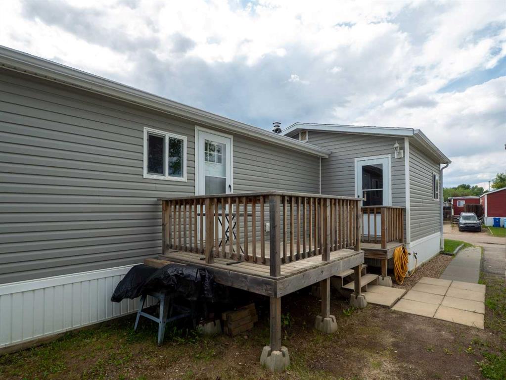 Welcome to 129 Grey Crescent in Gregoire Park, a well-maintained 1075 sq ft single wide with addition on a spacious 5933 sq ft corner lot. Originally built in 1978, this home has been given an effective age of 19 years with a remaining economic life of 31 years. Featuring 3 bedrooms, 2 full bathrooms and a bonus area, this layout is functional and uncommon. Enjoy recent updates including fresh paint, new flooring, a new hot water tank (2022), and a new washer and dryer just 2 years old and a brand new fridge (Aug 2025). The home also includes a 12x16 heated and insulated shed (2017), fenced yard on 3 sides (could be fully fenced with ease), and a large porch addition. Other highlights include 2015 shingles, 2014 siding, gutters, skirting with Styrofoam insulation and vents, 2014 cabinets, and appliances from 2016 to 2018, furnace is older but has been serviced annually. The home is tied down, has new water lines and an insulated belly bag as of 2021, and offers ample parking. This home allows space for all your toys and everything the outdoor enthusiast lifestyle demands, from trailers and sleds to boats and gear. Book a viewing to make this one your very own.