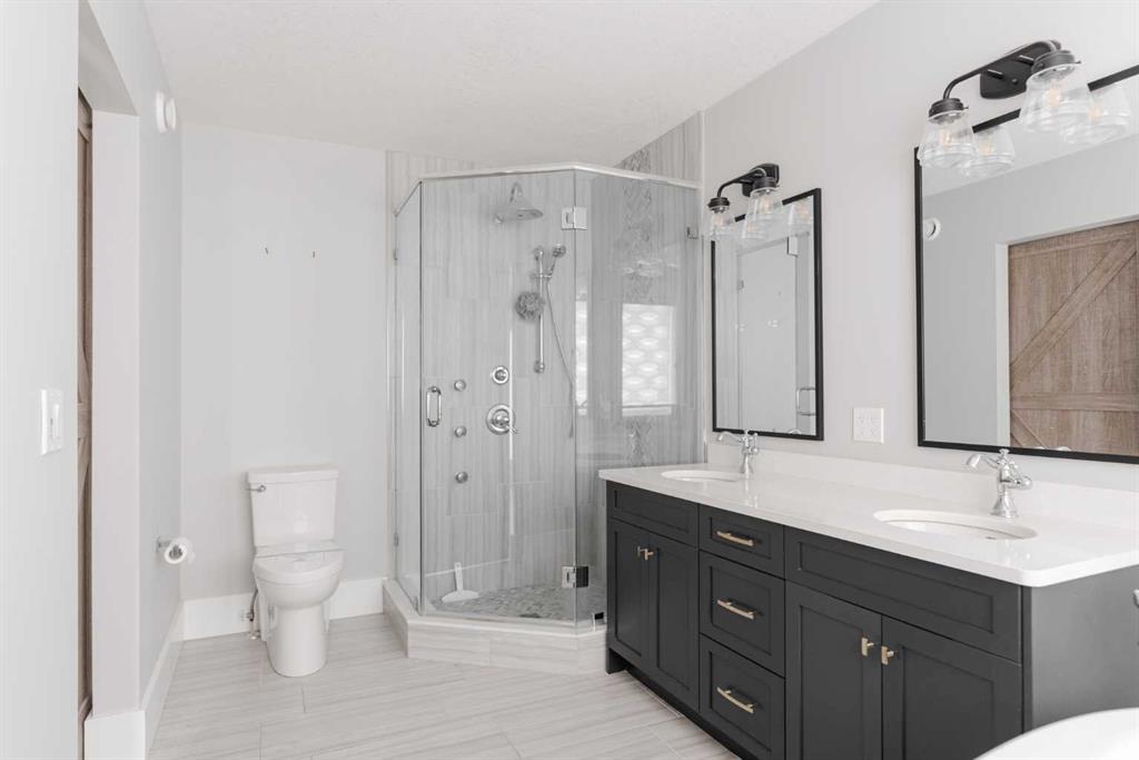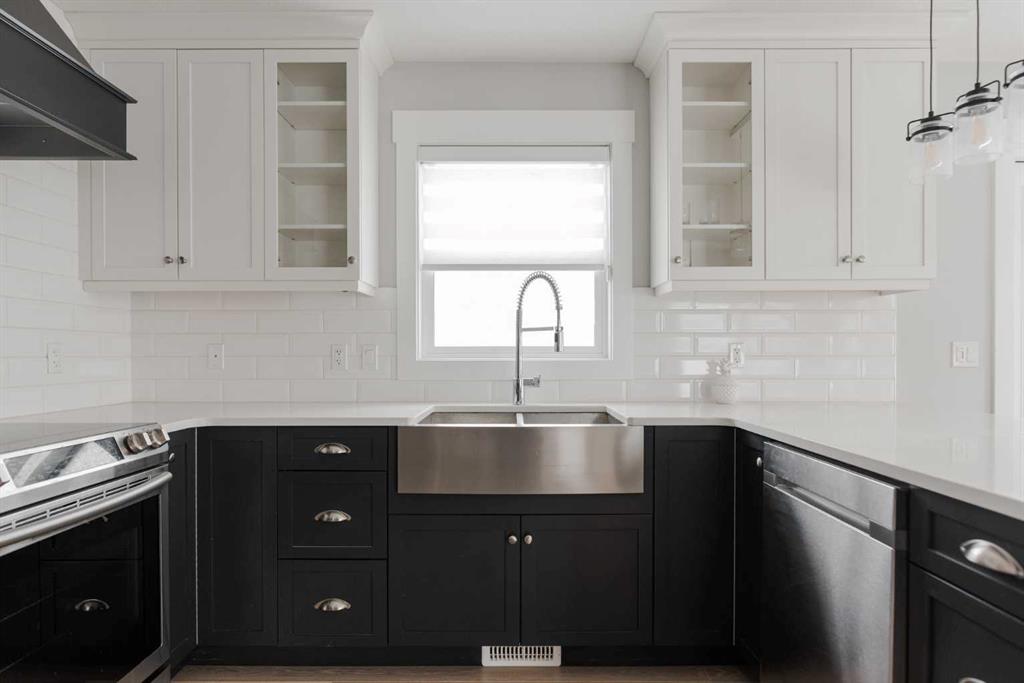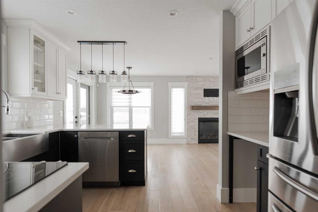 This beautifully upgraded home showcases high-end finishes and exceptional craftsmanship throughout. Flooded with natural light, the main level features elegant hardwood and tile flooring, a cozy living room with a gas fireplace and wood mantel. The designer kitchen is a standout with ceiling-height kitchencraft maple cabinetry with under the counter lighting, crown trim, custom vent hood, stainless steel sink, stylish backsplash, coffee bar, and a large pantry with built-in shelving. There's a half bathroom and spacious diningroom with and the home features lighting from Park Lighting. Upstairs offers three oversized bedrooms, including a luxurious primary retreat with a custom walk-in closet and spa-inspired ensuite. The fully finished basement features a separate entrance, large bedroom, full bathroom, and sitting area. Additional highlights include a heated 21’ x 25’ garage with hot and cold water, wide hardwood staircase, convenient upper-floor laundry, and a fully fenced, landscaped backyard with brick accents and an aggregate driveway for additional parking. The back deck is partially covered for shade during the summer. This property is sold 'as is where is" no representations are made with respect to the property.