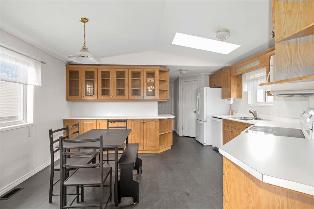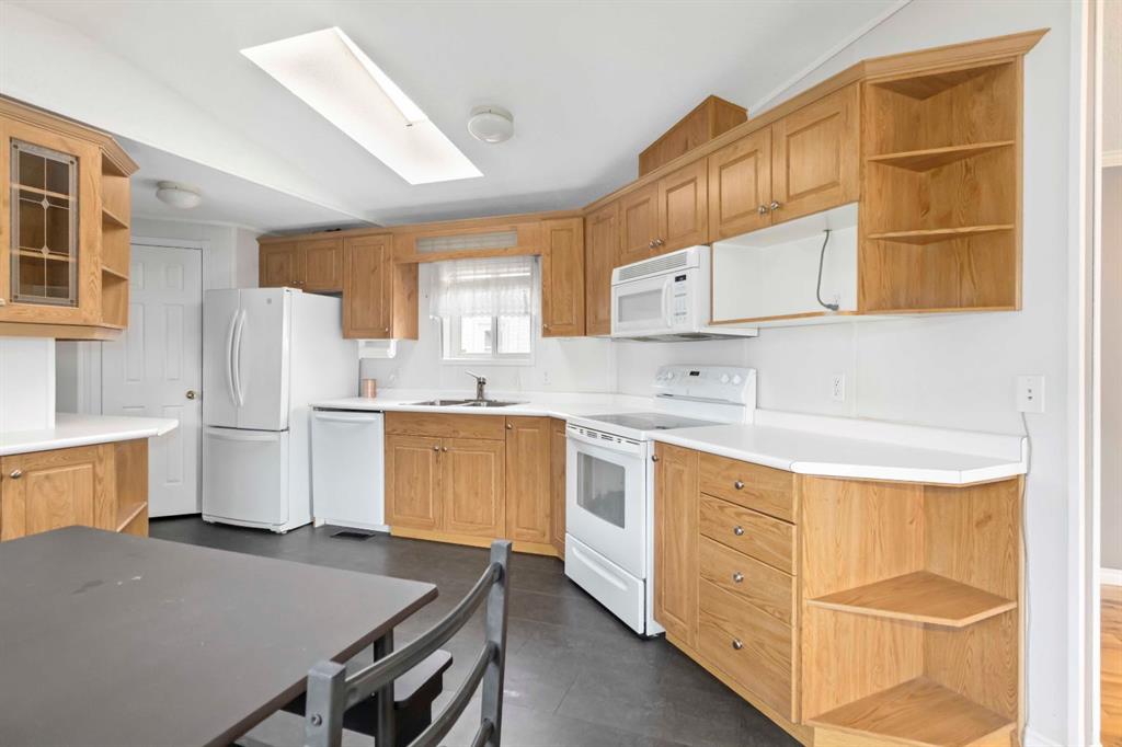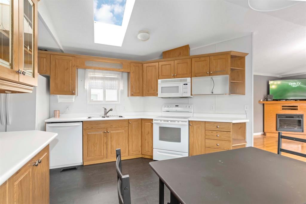 Welcome to 128 Caouette Crescent! This is a well maintained 3 bedroom, 2 bathroom mobile home is packed with features for a comfortable and stylish living in the heart of Timberlea with a LARGE HEATED SHED WITH A BUILT IN BAR. The spacious living room welcomes you with well maintained hardwood floors, crown molding, and a cozy built in corner electric fireplace that adds both charm and warmth. The kitchen is bright and functional, featuring an abundance of cabinetry, white countertops, a large walk-in PANTRY, and an eating area spacious enough to fit a full 6 seat dining table. Perfect for family meals or entertaining guests.