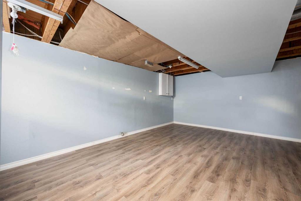 But wait, there is more. The basement offers a large rec room with new laminate flooring. The ceiling is open which means you can finish it however you like or leave it as is for easy access to everything above. The laundry area down here comes complete with the washer and dryer included.