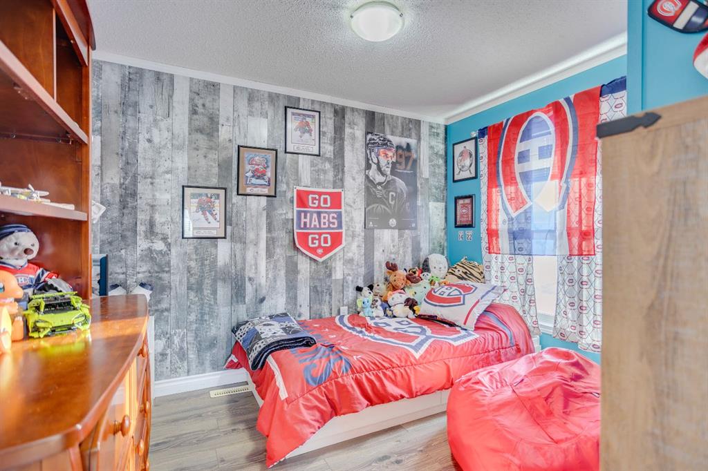 This home offers three well-sized bedrooms, including a generous primary suite complete with a walk-in closet and a 4-piece ensuite featuring ceramic tile flooring and a relaxing soaker tub. Two additional bedrooms are located on the opposite side of the home and share direct access to a 4-piece bathroom and a second living area, ideal for a home office or family room.