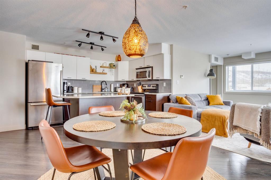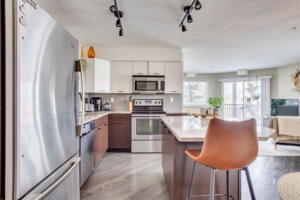 Welcome to Hangingstone Landing, a prestigious downtown residence offering an exceptional executive-style second-floor corner unit with enhanced privacy and a desirable south-facing balcony. This well-appointed 811 sq. ft. open-concept condominium features two bedrooms and two bathrooms, thoughtfully designed to maximize comfort and functionality.