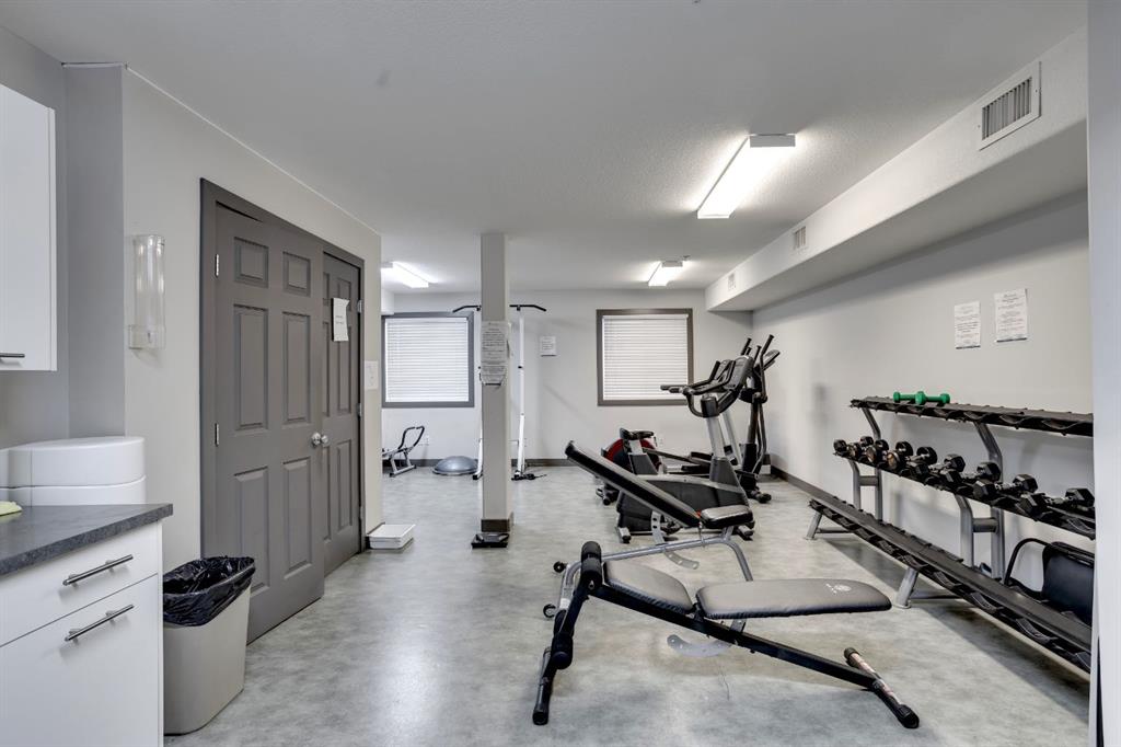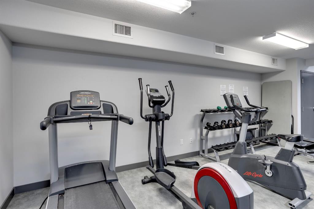 Additional features include one titled underground parking stall. Residents of The Hanginstone Landing enjoy access to premium amenities, including a fully equipped fitness room. Condo fees conveniently cover water, heat, garbage, exterior insurance, and reserve fund contributions.