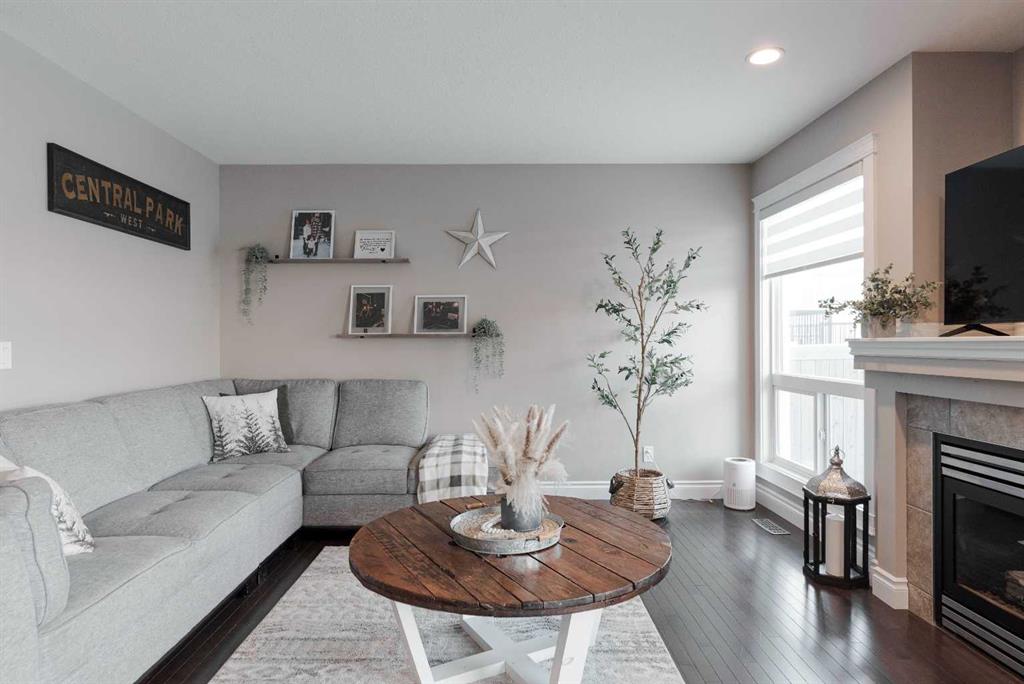 The living room is warm and inviting with a gas fireplace and hardwood flooring throughout the main level. A conveniently located 2-piece bathroom sits near the entrance to the heated double attached garage, completing the main floor.