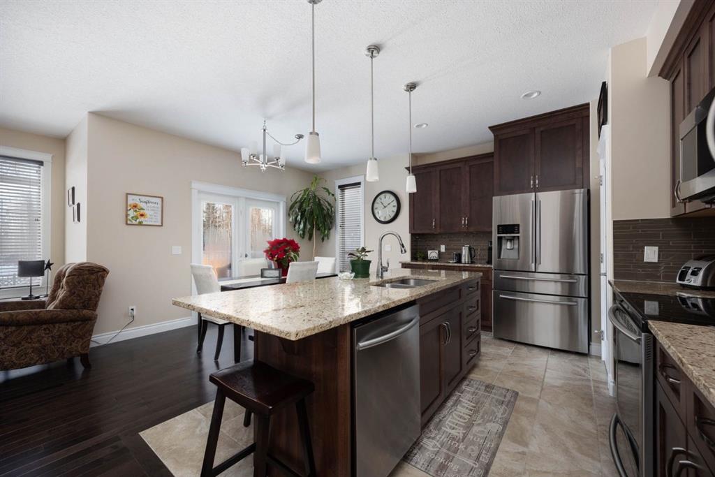 GREENBELT! LEGAL SUITE! BONUS ROOM & DEN! Welcome to 164 Dafoe Way — a thoughtfully designed family home backing onto the greenbelt. Perfectly positioned in the back of quiet street away from heavy traffic, this impeccably maintained 1,975 sq ft home offers the ideal blend of space, function, and location for growing families. With no rear neighbours and serene greenbelt views, everyday life here feels calm and connected to nature. The main floor features a smart, family-friendly layout with a front office—perfect for working from home or a home based business—followed by an open-concept kitchen, dining, and living area designed for both everyday living and entertaining. The kitchen truly is the heart of the home, complete with quartz countertops, a large island, tile backsplash, and a convenient walk-through pantry leading to the back mudroom with main-floor laundry and access to the heated double attached garage. The dining nook opens through double doors to a two-tiered deck and fully fenced backyard overlooking the greenbelt—an ideal setup for kids, pets, and summer evenings surrounded by nature. Upstairs, families will love the spacious bonus room, two generous children’s bedrooms, a full 4-piece bathroom, and a private primary retreat. The primary bedroom enjoys peaceful forest views and features a walk-in closet and ensuite with an extended vanity, jet tub, and separate shower. The fully developed legal 2-bedroom basement suite offers exceptional flexibility—perfect as a mortgage helper, multi-generational living, or future income potential—with its own kitchen, laundry, and 4-piece bathroom. Additional highlights include central air conditioning, central vacuum, and a heated double attached garage. This home checks all the boxes for young families seeking space, privacy, and a premium greenbelt location. A rare opportunity in a fantastic neighbourhood—don’t miss it.