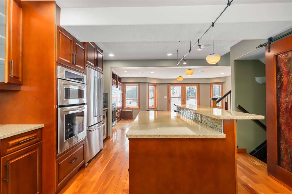 Welcome to 122 Goodwin Place, a truly one of a kind home in Fort McMurray, perfectly tucked away on a quiet corner lot in Grayling Terrace with breathtaking, unobstructed views of the Hangingstone River. From the moment you arrive, the stunning curb appeal and picturesque hillside backdrop set the tone for what awaits inside. The open concept main floor is designed to impress, featuring a beautifully appointed kitchen with ceiling height cabinetry, quartz countertops, ample storage, and a raised island with a cleverly hidden slide out table that comfortably seats six. The living room is anchored by a wall of windows that perfectly frame the incredible south facing views and flood the space with natural light, while a cozy wood burning fireplace surrounded by custom built-ins creates a warm and inviting atmosphere. A convenient half bath completes the main level. Upstairs, the primary retreat is positioned at the back of the home to fully capture the stunning river views and offers a luxurious ensuite complete with in-floor heat, a heated towel rack, jet tub, and a corner glass jetted shower. Two additional bedrooms, a second full bathroom, and extra storage complete this level. The fully developed basement offers a comfortable family room with a natural gas fireplace, built-in surround sound, and a fourth bedroom/office space/den, along with the added convenience of a dedicated pet wash station. Step outside and imagine spending your summers entertaining on the large back deck, surrounded by brick lined gardens and the serenity of having no backing neighbours. Only the peaceful sights and sounds of the river flowing behind you. Walking trails along the river invite evening strolls and outdoor enjoyment, while the attached garage provides additional storage and parking. This home features no carpet throughout, gorgeous cherry wood flooring, solid doors, rich wood trim, and timeless character you’ll never forget. On top of all this, this home is tucked away in the quiet community of Grayling Terrace, a neighbourhood that brings you back in time where neighbours start their mornings with a friendly wave and a “have a good day.” This property is perfectly suited for a working couple or a growing family, with the added bonus of a nearby park and splash park just minutes away. This exceptional home offers privacy, charm, and lifestyle in a peaceful cul-de-sac setting. This opportunity that truly doesn’t come along often. Don’t miss your chance to book your private showing today.