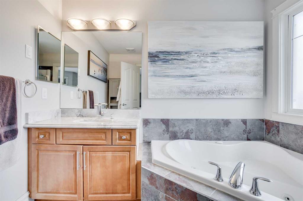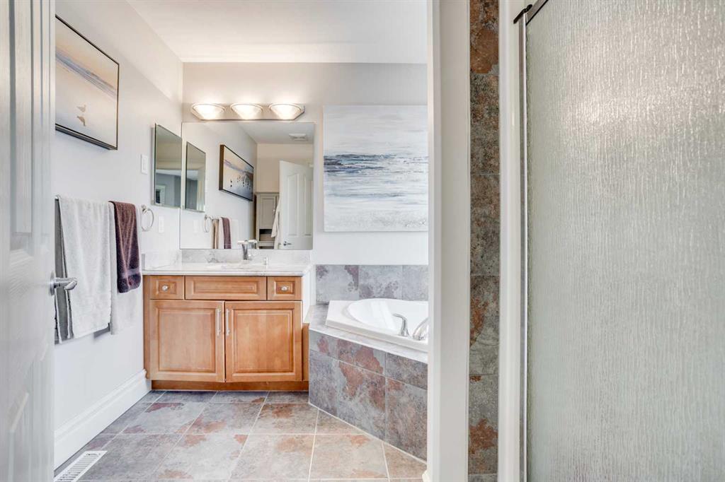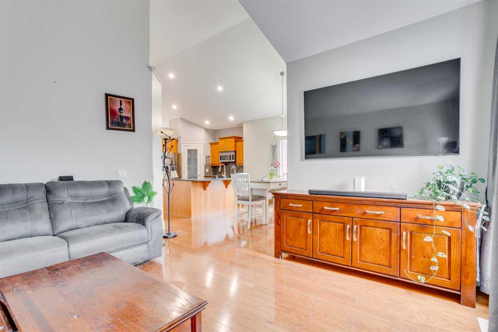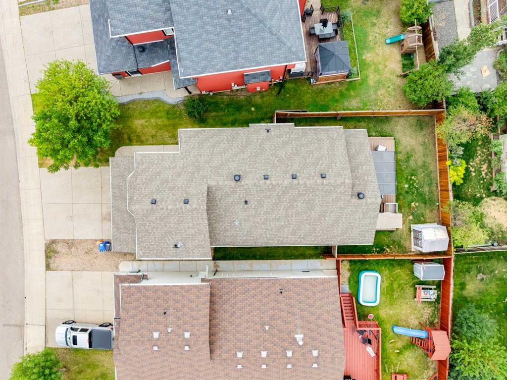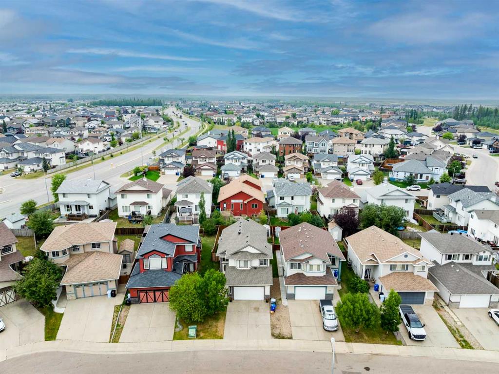Welcome to 176 Maple Leaf Lane, a stunning modified bi-level home located just off Wild Rose Street in a highly desired neighborhood near greenbelt walking trails, schools, and all amenities. This home features a double attached heated garage with epoxy floors, hot/cold water hook up, and an open-concept main floor with vaulted ceilings and hardwood flooring. The beautiful kitchen offers granite countertops, stainless steel appliances, a large island with breakfast bar, corner walk-in pantry, and flows into a spacious dining area and cozy living room with a gas fireplace. Two main floor bedrooms and a full 4-piece bathroom with granite counters complete the main level. Upstairs, the massive primary suite includes a walk-in closet and a luxurious ensuite with granite counters, a corner jetted tub, and separate shower. The fully developed basement features dual stair access, a separate entrance, and an illegal suite with two large bedrooms (one with walk-in closet), a full bathroom, kitchen (added in 2021), and living space. A shared laundry room is accessible from both levels, maintaining privacy if you choose to rent the basement. The fenced and landscaped backyard includes a composite deck (2022) perfect for summer enjoyment. Additional upgrades include a hot water tank (2022), laundry room renovation (2021), newer paint, air conditioning, and central vacuum. Located on a quiet street, this versatile home is move-in ready—book your personal showing today!