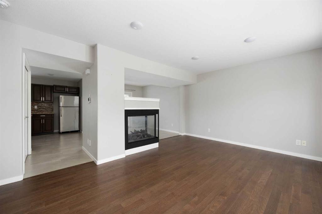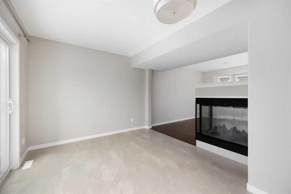 The open-concept main floor is ideal for both everyday living and entertaining, featuring a spacious living room, dining area, and a large, well-appointed kitchen. Anchoring the space is a stunning three-way fireplace, creating warmth and ambiance that can be enjoyed from multiple areas of the home.