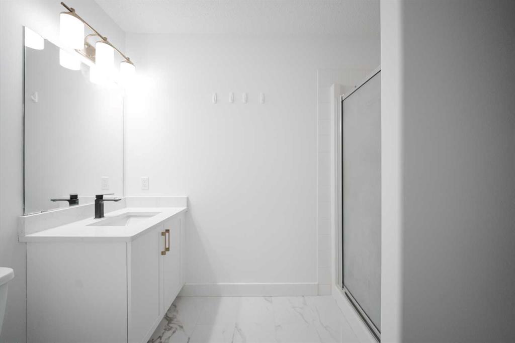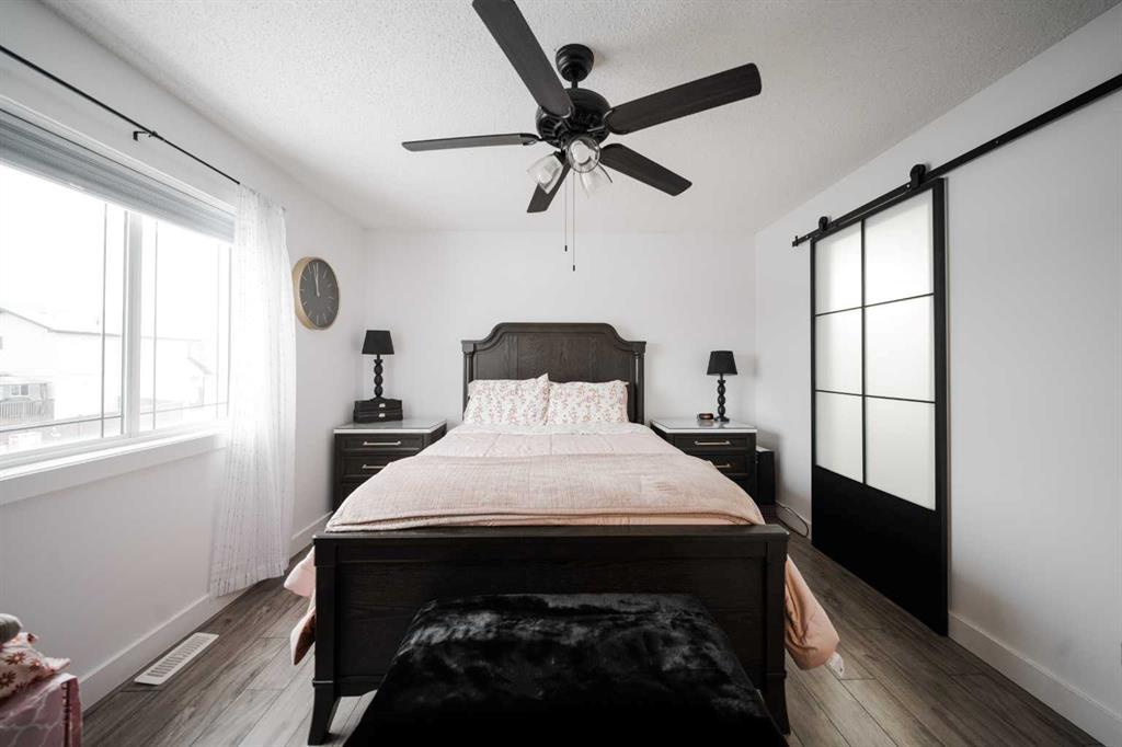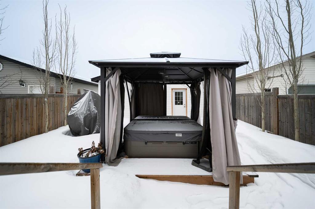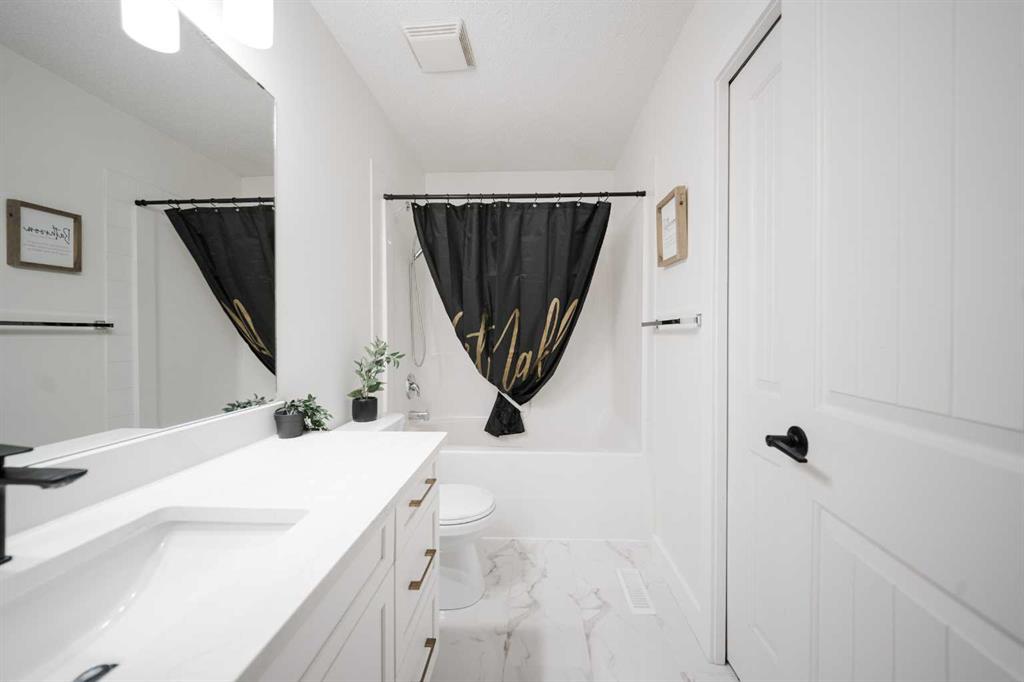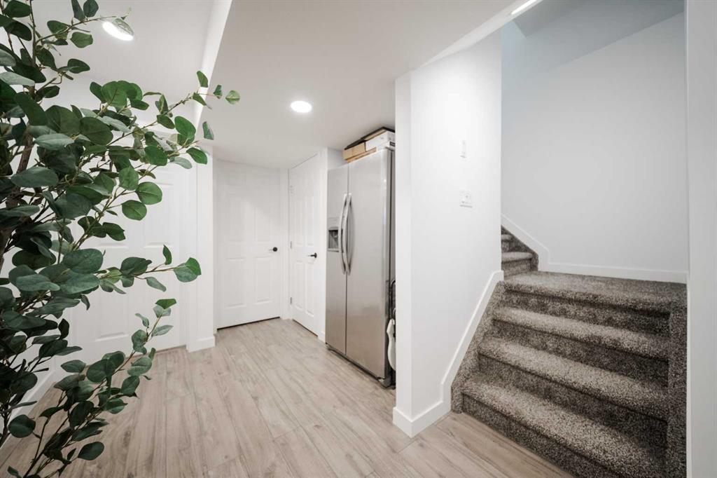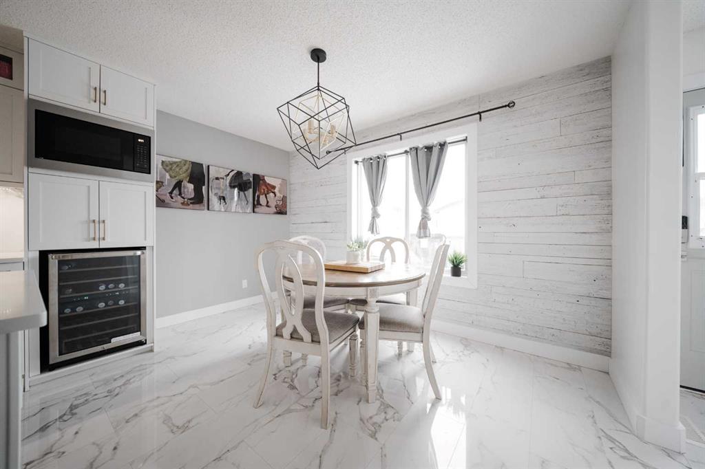 Welcome to 237 Sandstone Lane, where exceptional craftsmanship, thoughtful upgrades, and timeless design come together in one stunning Stone Creek home. Major exterior improvements include updated shingles, exterior doors, a newer deck, and a dedicated hot tub pad with wiring completed (permit approved). Step inside to a spacious front living room featuring modern laminate flooring and a striking feature wall, flowing seamlessly into a show-stopping white kitchen by Jos-Will Millwork. Built with solid maple doors, elegant gold hardware, under-cabinet lighting, glass-front uppers, and a massive 8-foot island topped with seamless quartz countertops, this chef’s kitchen is both beautiful and built to last. Upgraded Frigidaire Professional Series appliances (including a gas stove), luxury vinyl plank flooring, contemporary lighting, a coffee bar, and a built-in wine cooler complete the space. The main level also offers a stylish updated 2-piece bathroom and a spacious dining area accented by a chandelier overlooking the backyard. Upstairs you’ll find new trim, new closet doors, three bedrooms, and two fully renovated bathrooms — all finished with matching cabinetry, quartz countertops, new toilets, mirrors, and luxury vinyl plank flooring for a cohesive high-end feel. The newly completed basement features a professionally finished California knockdown ceiling, cozy family room, spacious bedroom, full bathroom, and beautiful laminate flooring — perfect for guests or growing families. Outside, enjoy the private backyard oasis with a deck (2021) with privacy lattice, full fencing, tasteful landscaping with Aspen trees, interlocking brick, flower beds, an enclosed dog run with artificial turf, and a detached double garage (2022) with rear alley access. Additional highlights include central A/C and a prime location close to schools, shopping, and all Stone Creek amenities. Move-in ready luxury — this home truly checks every box!