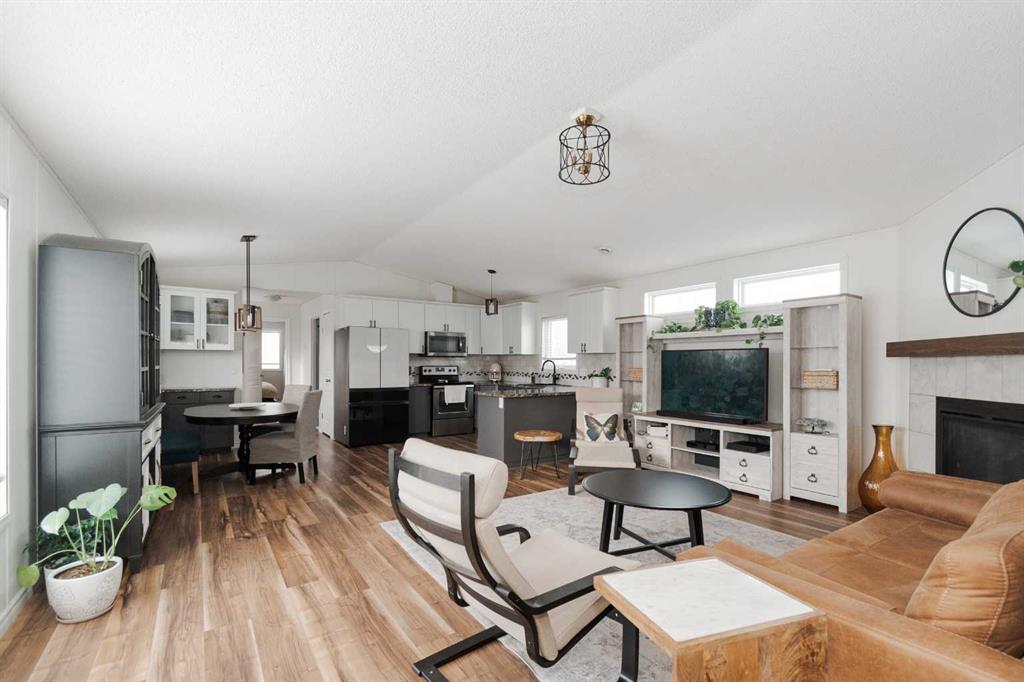 Step inside to be greeted by vaulted ceilings, oversized windows, and a cozy corner gas fireplace that anchors the main living area, creating a warm and welcoming space. Recently upgraded luxury vinyl plank flooring flows throughout the home, complemented by upgraded light fixtures throughout the main living spaces. Central air conditioning was added in 2025 for extra comfort during the warmer months.