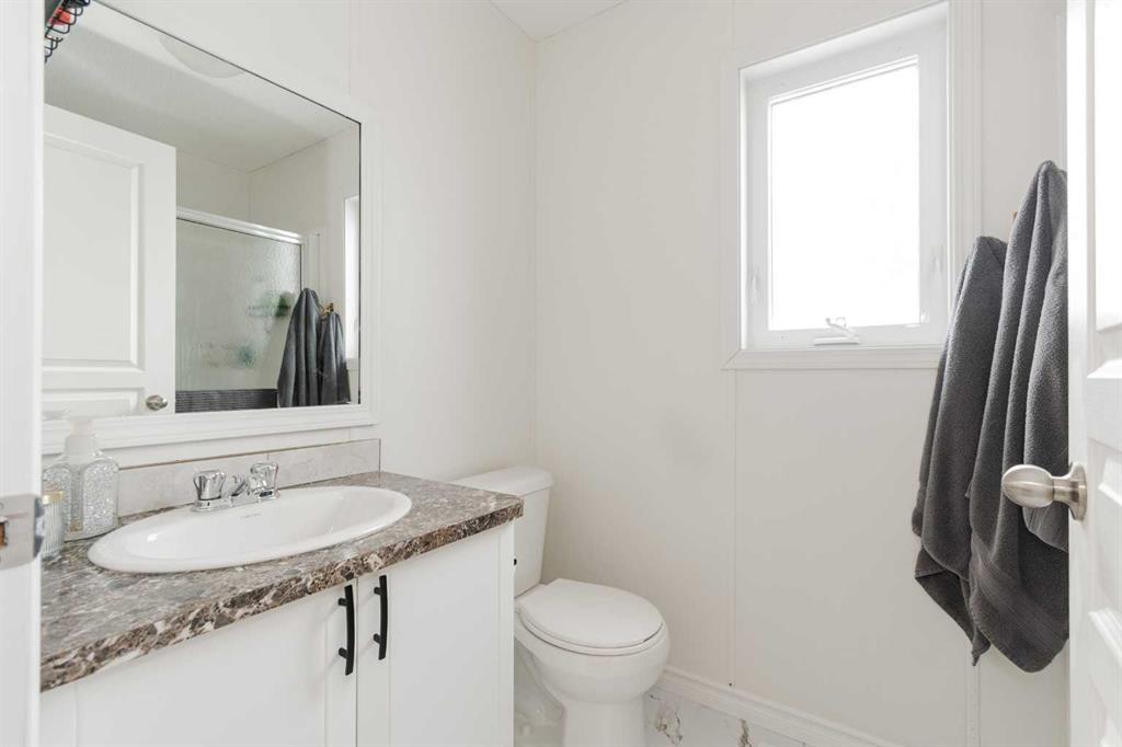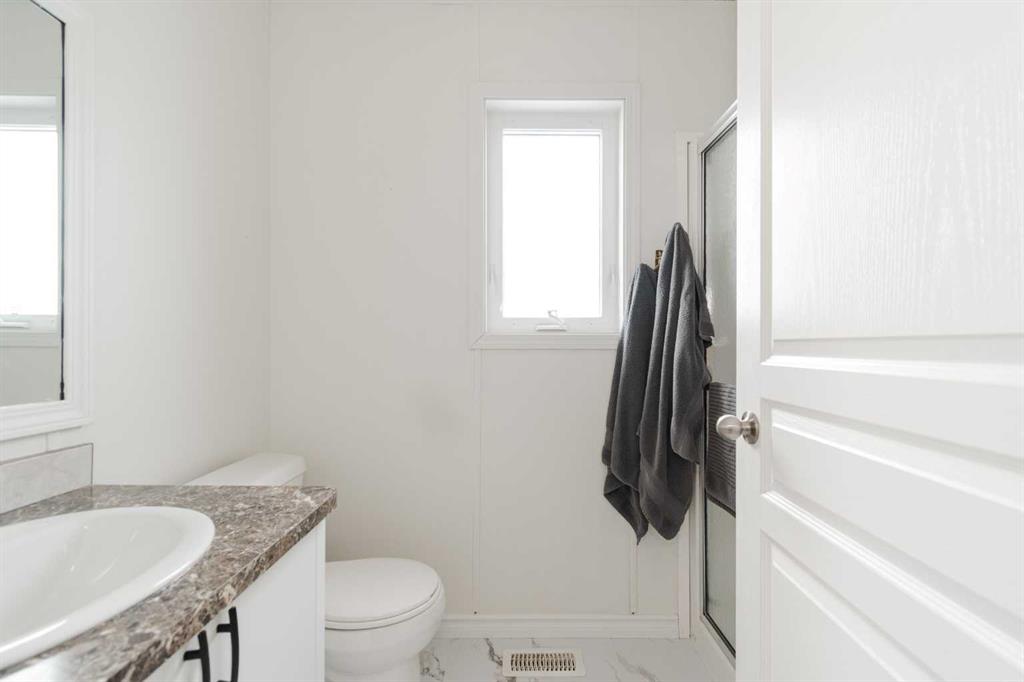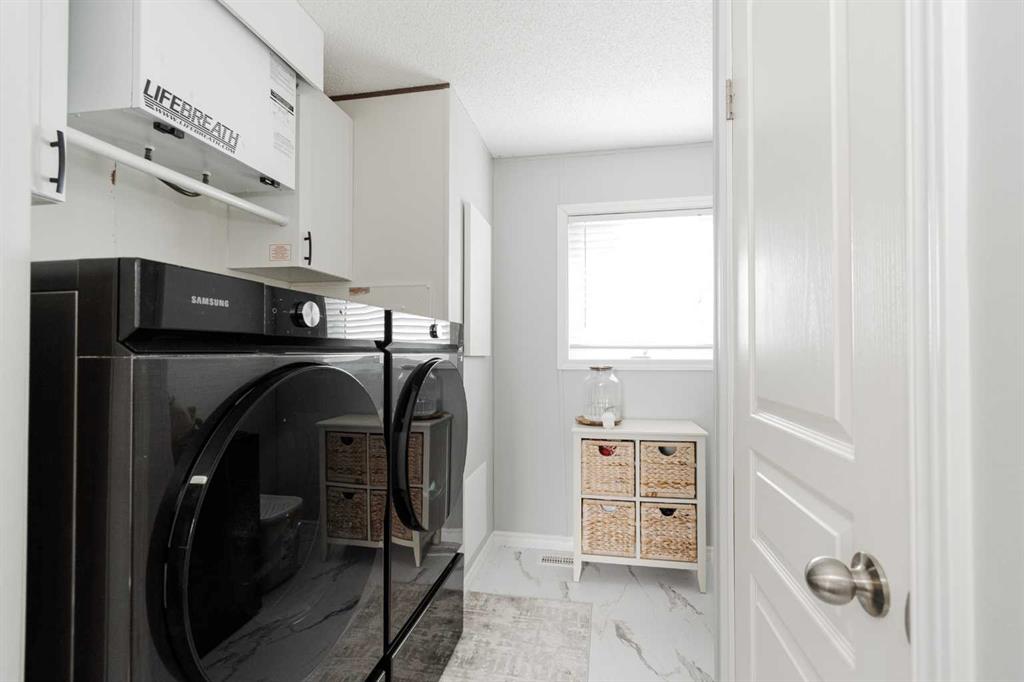 Tucked away at the back of the home, the primary bedroom provides a peaceful retreat with room for a king-sized bed, a walk-in closet, and a three-piece ensuite. Also located at the back of the home is a dedicated laundry room complete with a new washer and dryer, an additional closet, and extra space for storage. On the opposite end, three additional bedrooms and a four-piece bathroom create a flexible layout ideal for families, guests, or dedicated office and hobby spaces.