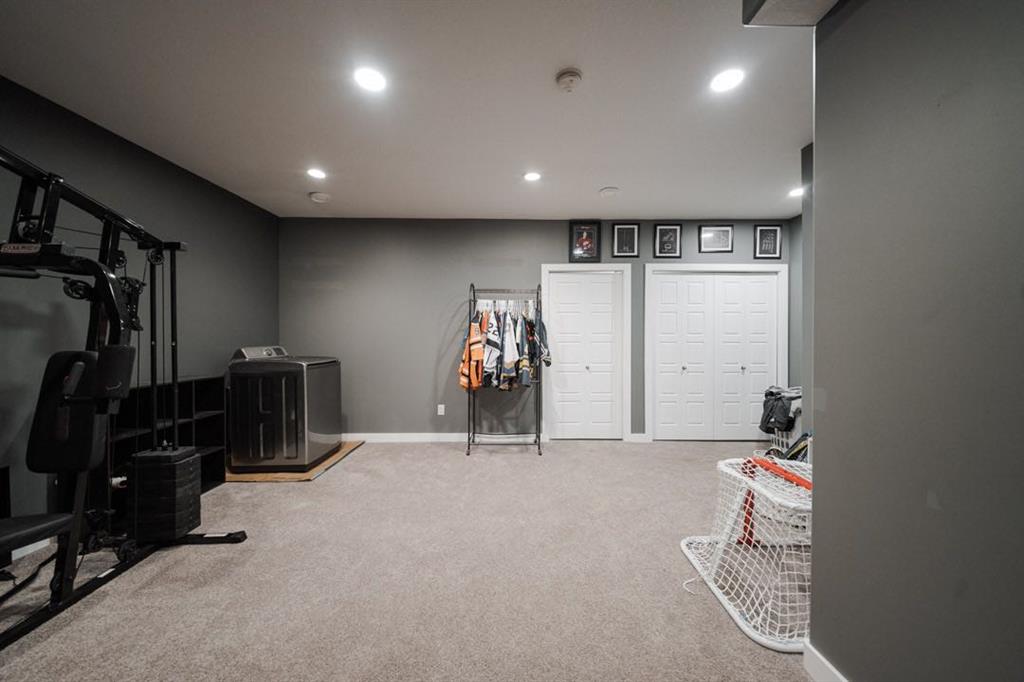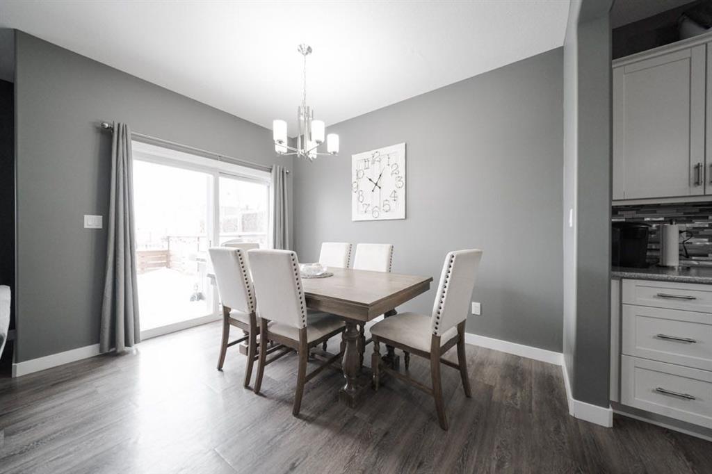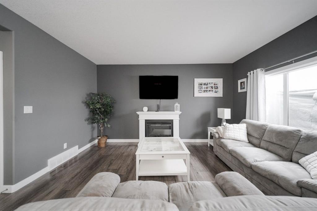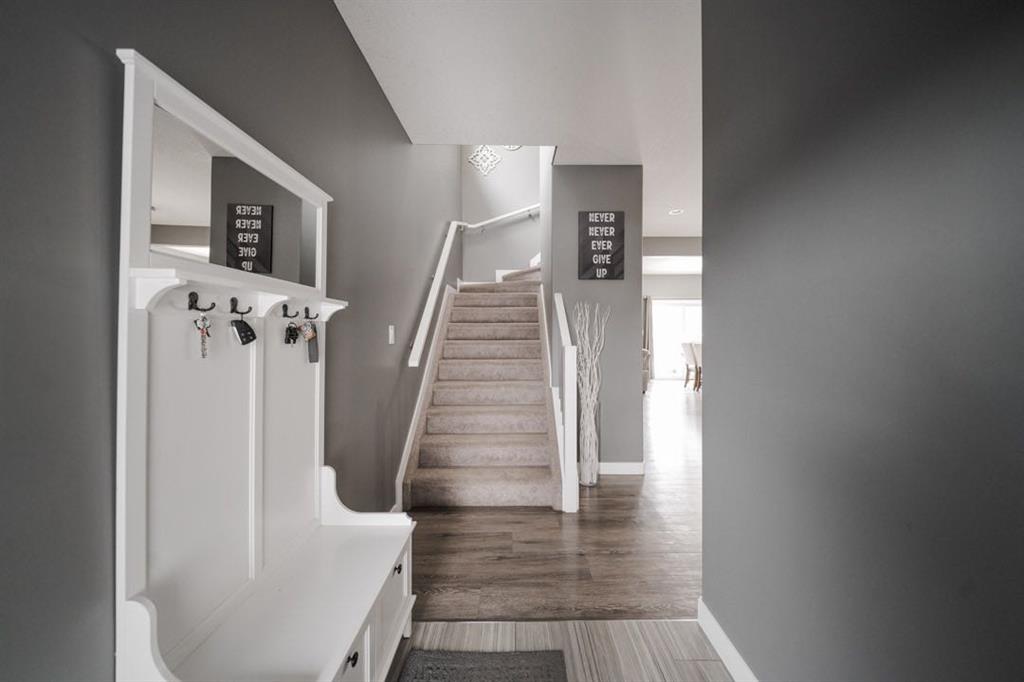 Curb appeal is modern and inviting, complemented by an attached double garage and a two car driveway. The garage is heated and includes a workbench and deep freezer that will stay with the home. Inside, the main level features an open concept layout that flows comfortably from the living room into the kitchen and dining area, creating a welcoming space for everyday living and entertaining. The kitchen is finished with slow close cabinetry, under cabinet lighting and stainless steel appliances.