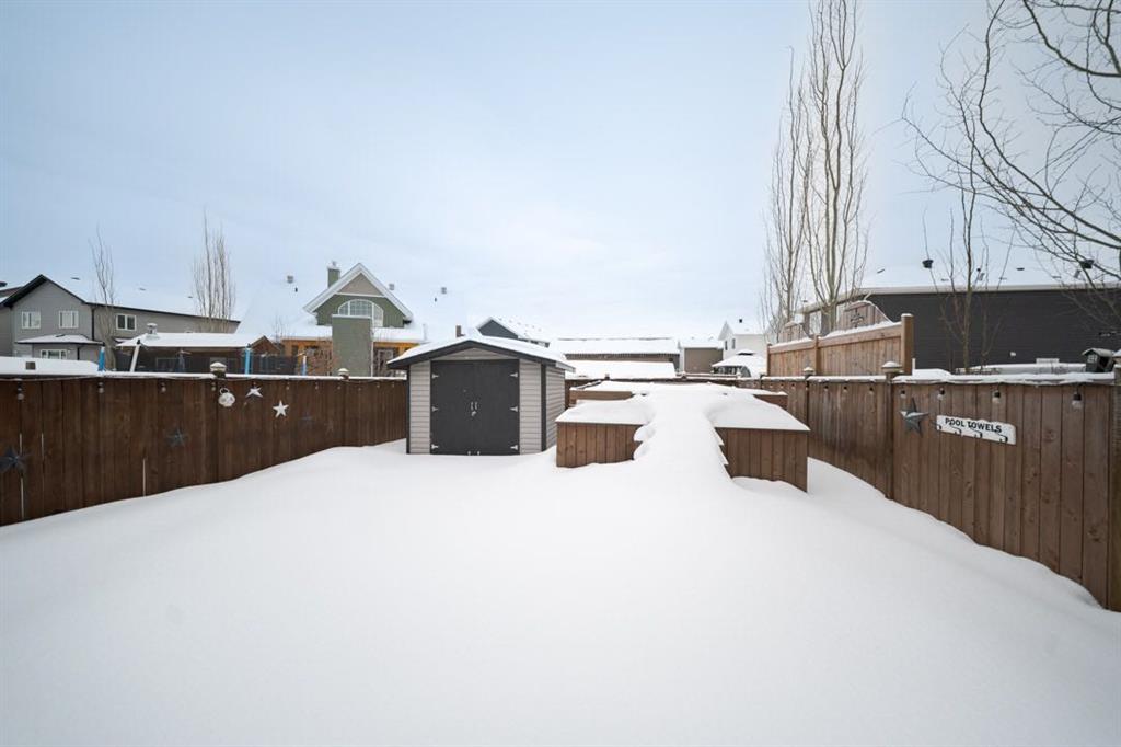 The fully fenced backyard is designed for low maintenance with crushed stone throughout. A gazebo and prefab shed are included, offering practical outdoor storage and a shaded space to relax.