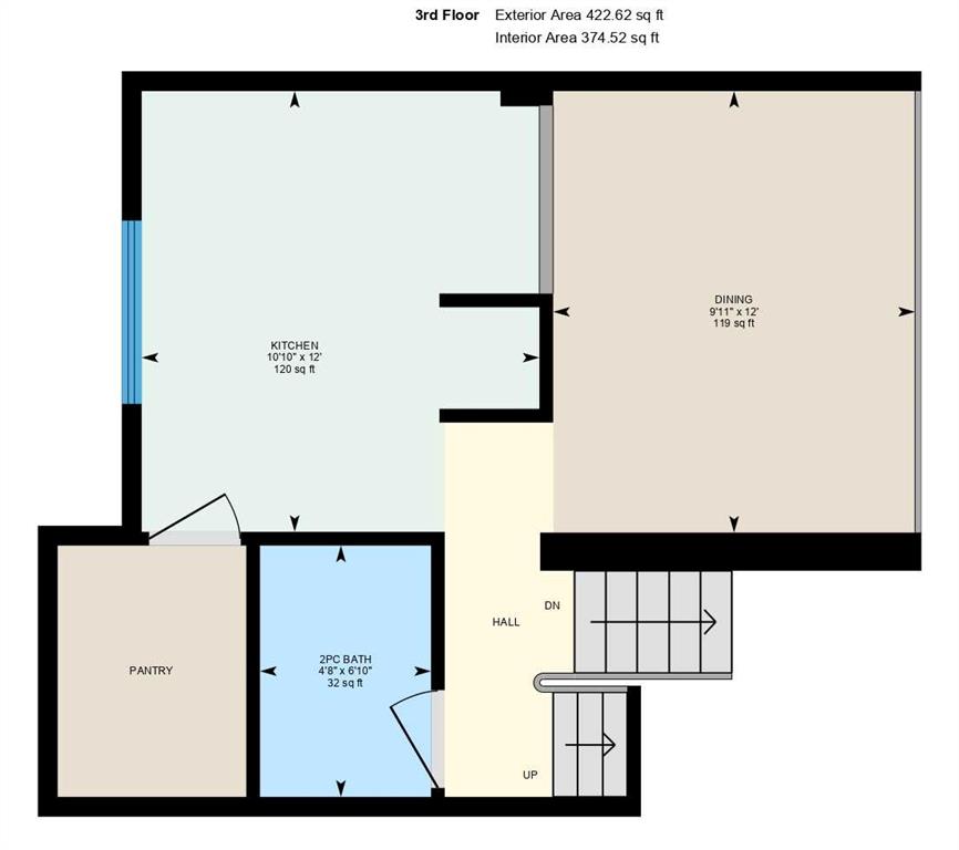 The next level features a dining area overlooking the living room, creating an open and connected feel. The kitchen offers ample counter and cupboard space, along with a sizeable pantry to meet all your storage needs. A convenient 2-piece bathroom completes this level.