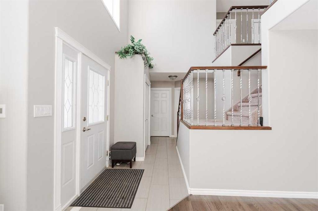 Step through the front door and the updated grand staircase paired with soaring ceilings immediately draws the eye upward, creating an airy, impressive entry that flows effortlessly into the main living areas. The main level impresses with a comfortable living room which includes a Dining space featuring a subtle accent wall. A well-appointed kitchen with sleek quartz countertops and a cozy breakfast nook. A family room warmed by a gas fireplace. Office/nursery, whichever you would prefer while Main-floor laundry saves the trips to the basement. A handy 2-piece bath finishes it off.