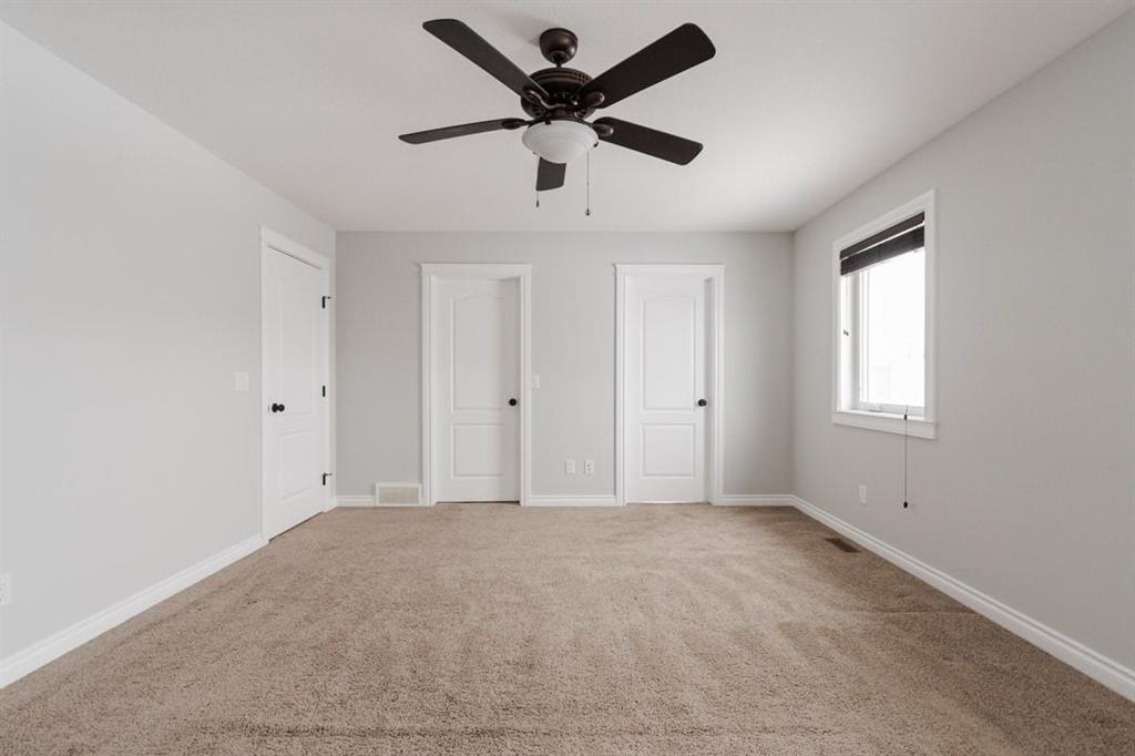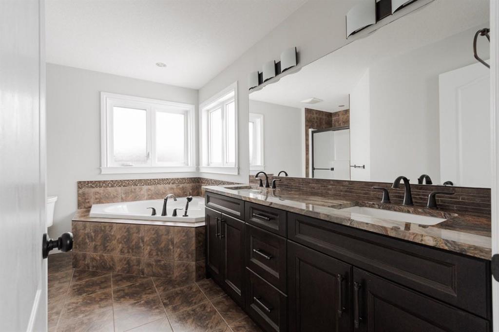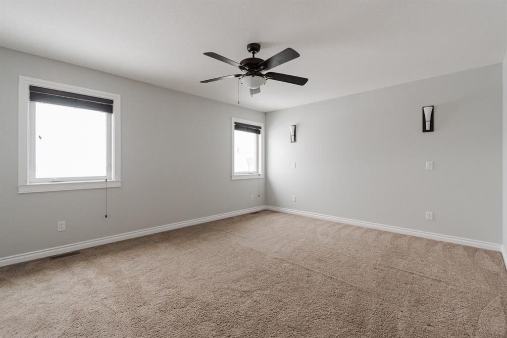 Upstairs, you will find three bedrooms, including a spacious primary suite with a wall to wall closet and a five piece ensuite featuring dual sinks, a walk in shower, and an air jet soaker tub. Thoughtful details include brushed bronze hinges and hardware, as well as sconces on a three way switch in the ensuite. Carpets on the upper level have just been professionally cleaned, and the additional bedrooms offer generous closet space.