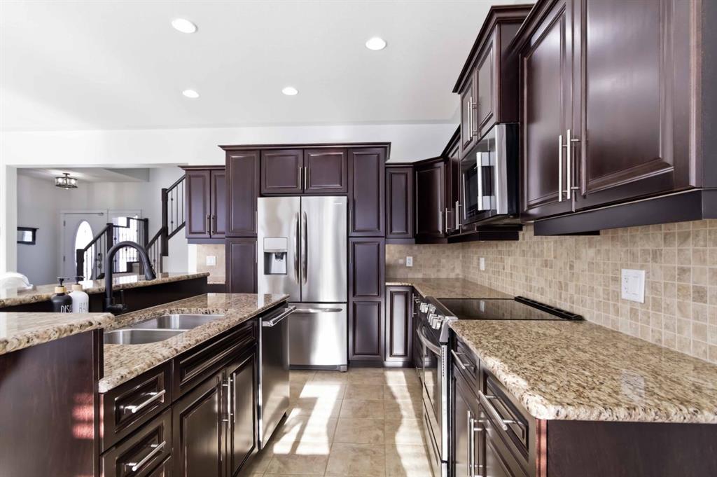 Welcome to this extremely well maintained family home tucked away on a quiet street in Timberlea, just minutes from the beautiful trail systems that wrap around a pond and extends toward Parsons and Stone Creek. From the moment you arrive, the pride of ownership is evident with brick siding accents and a double driveway leading to the oversized 25’2” x 23’9” heated garage complete with built in storage and a convenient man door to the backyard, perfect for a future dog run. Step inside to a spacious front entry with a large closet and room to comfortably kick off your boots. The open concept main floor is warm and inviting, featuring hardwood floors, a corner gas fireplace, and a large window overlooking the backyard. The kitchen offers abundant cabinetry, granite countertops, stainless steel appliances (2019), and an island with an eat up bar seating four. The dining area is filled with natural light and provides direct access to the back deck rebuilt six years ago creating seamless indoor outdoor living. Upstairs, the entire level features brand new carpet (February 2026). The bonus room over the garage offers incredible extra living space for the family. The spacious primary bedroom includes a large walk in closet and a 5 piece ensuite with granite countertops, double sinks, a jet tub, and a separate shower. Two additional bedrooms and a full bathroom with granite counters complete the upper level. The fully finished basement is ideal for families or guests, offering a large rec room with a built in cabinetry area complete with a mini fridge, microwave, and snack storage. A massive bedroom with two closets and a full bathroom makes this level perfect for teenagers or visitors. The backyard was refreshed six years ago and is designed for summer enjoyment, featuring a large deck, pergola, and a spacious 10x10 shed for outdoor storage. Additional updates include: