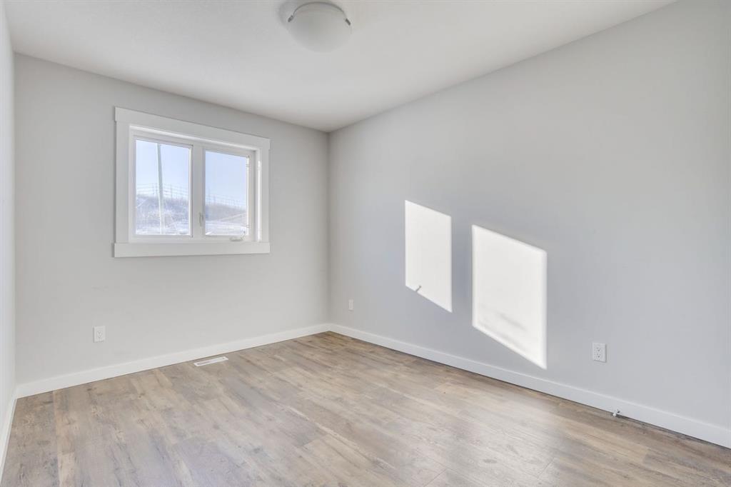The main level features a bright open-concept design that seamlessly connects the kitchen, dining, and living areas — creating an inviting space perfect for everyday living and entertaining. The contemporary kitchen is finished with quartz countertops, complemented by matching quartz surfaces in all bathrooms for a cohesive, upscale feel. A fourth bedroom and a full three-piece bathroom are conveniently located on this level, providing excellent flexibility. This main floor room can also be utilized as a private home office or guest suite.