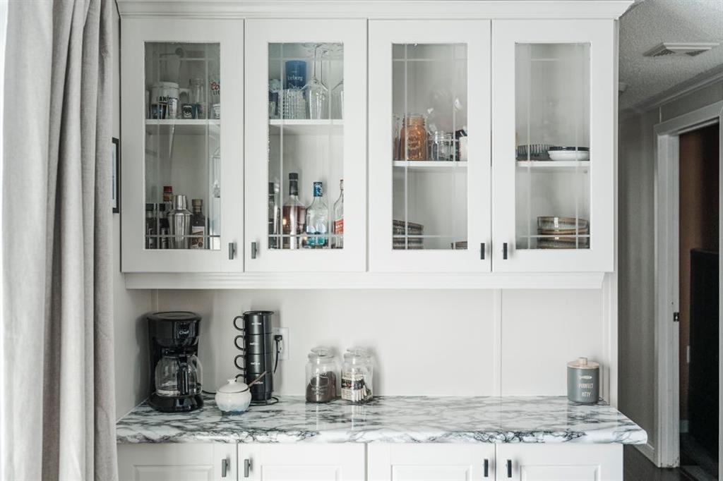 The dining area includes additional cabinetry for extra storage and patio doors updated in 2021 that lead directly to the deck, creating excellent indoor outdoor flow.